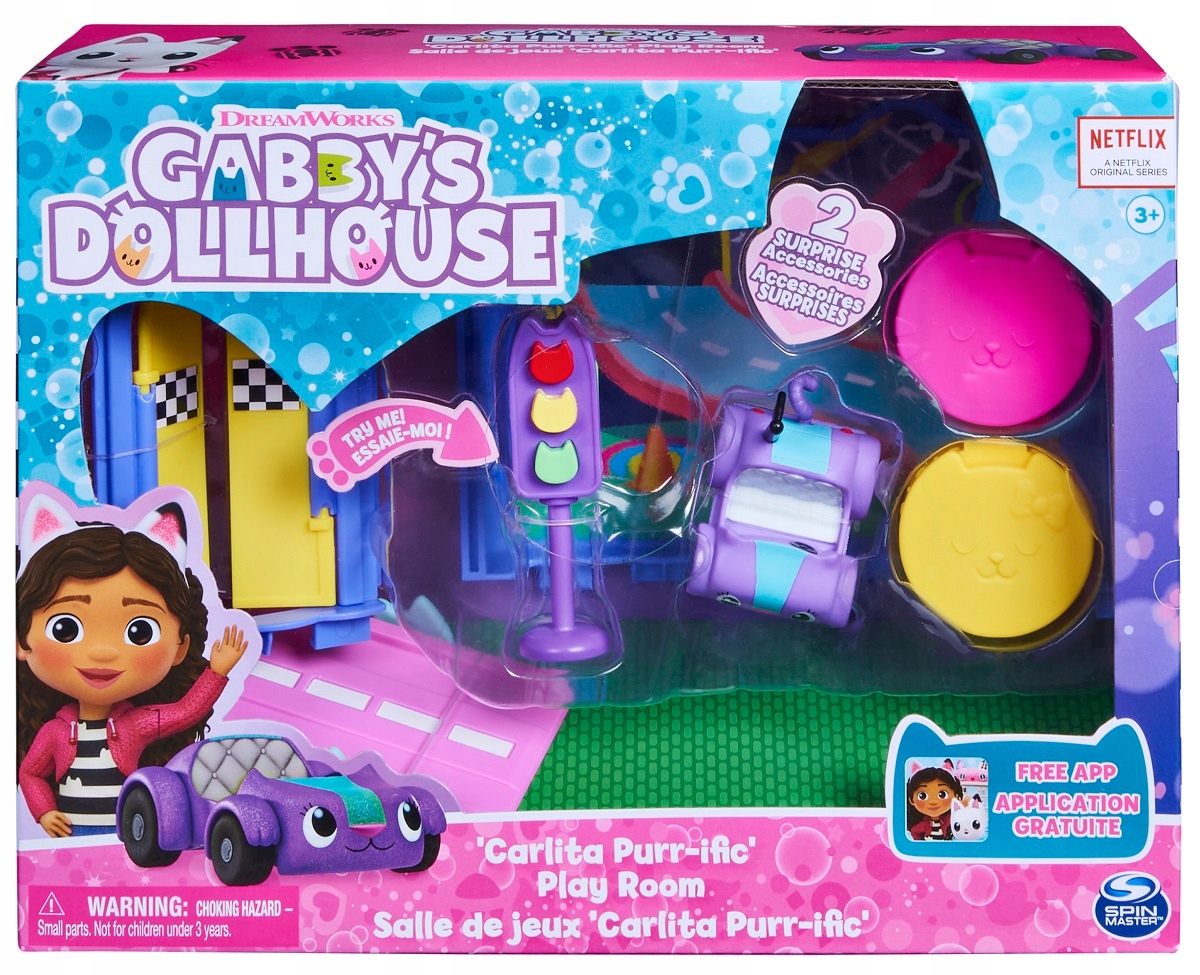 Приготовьтесь к удивительным кошачьим приключениям в игровой комнате Карлиты Мурр. -фик. Этот роскошный игровой набор «Кукольный домик Габби» полон забавных и захватывающих деталей, которые оживляют эту волшебную комнату из сериала. Включает в себя мини-автомобиль Carlita с настоящими рабочими колесами, дверь спальни с рисунком клетчатого флага, а также пандус с качелями в уличном стиле и миниатюрный стоп-сигнал с изображением охранника-хомяка Китти, который выскакивает, когда вы нажимаете на зеленую фигуру котенка. . Затем распакуйте припасы из кукольного домика, как это делает Габби в сериале, и обнаружите два сюрприза: дорожный конус и канистру с бензином, которую вы сможете использовать, когда Карлита отправится в приключение. Чтобы получить еще больше удовольствия, используйте Мурлыкающую игровую комнату Карлиты с МерКэтом в ванной комнате «Прихотливость и баловство» и спальню с кошачьими подушками Sweet Dreams (каждая продается отдельно), переместив их в кукольный домик Gabby's Purrfect (продается отдельно), чтобы построить свой кукольный мир Gabby's. В качестве последнего сюрприза отсканируйте QR-код, включенный в один из комплектов поставки кукольного домика, и получите специальную награду в бесплатном приложении Gabby's Dollhouse (доступно на iOS и Android). Кукольные домики, мягкие игрушки, статуэтки и игровые наборы Габби — это развивающие игрушки, которые станут отличным подарком для детей от 3 лет и старше, поскольку помогают развивать воображение посредством увлекательных и творческих ролевых игр.