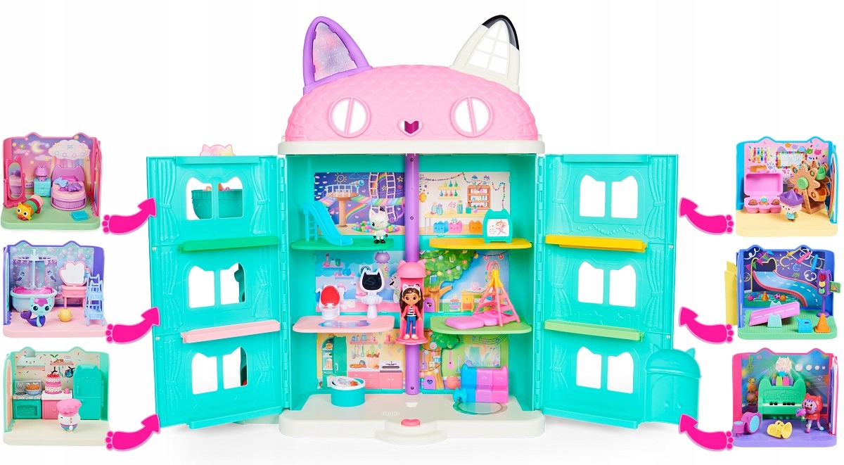 Кое-что о новой серии Spin Master Gabby`s Dollhouse: каждый день с небольшим волшебством и новым сюрпризом, Gabby's Dollhouse полон мини-миров, неотразимых кошачьих персонажей и супер веселых приключений! Присоединяйтесь к Габби, которая в каждом эпизоде распаковывает новый сюрприз, делится своим волнением со своей лучшей подругой-мягкой игрушкой Панди Лапой и отправляет всех в еще одно великолепное приключение.