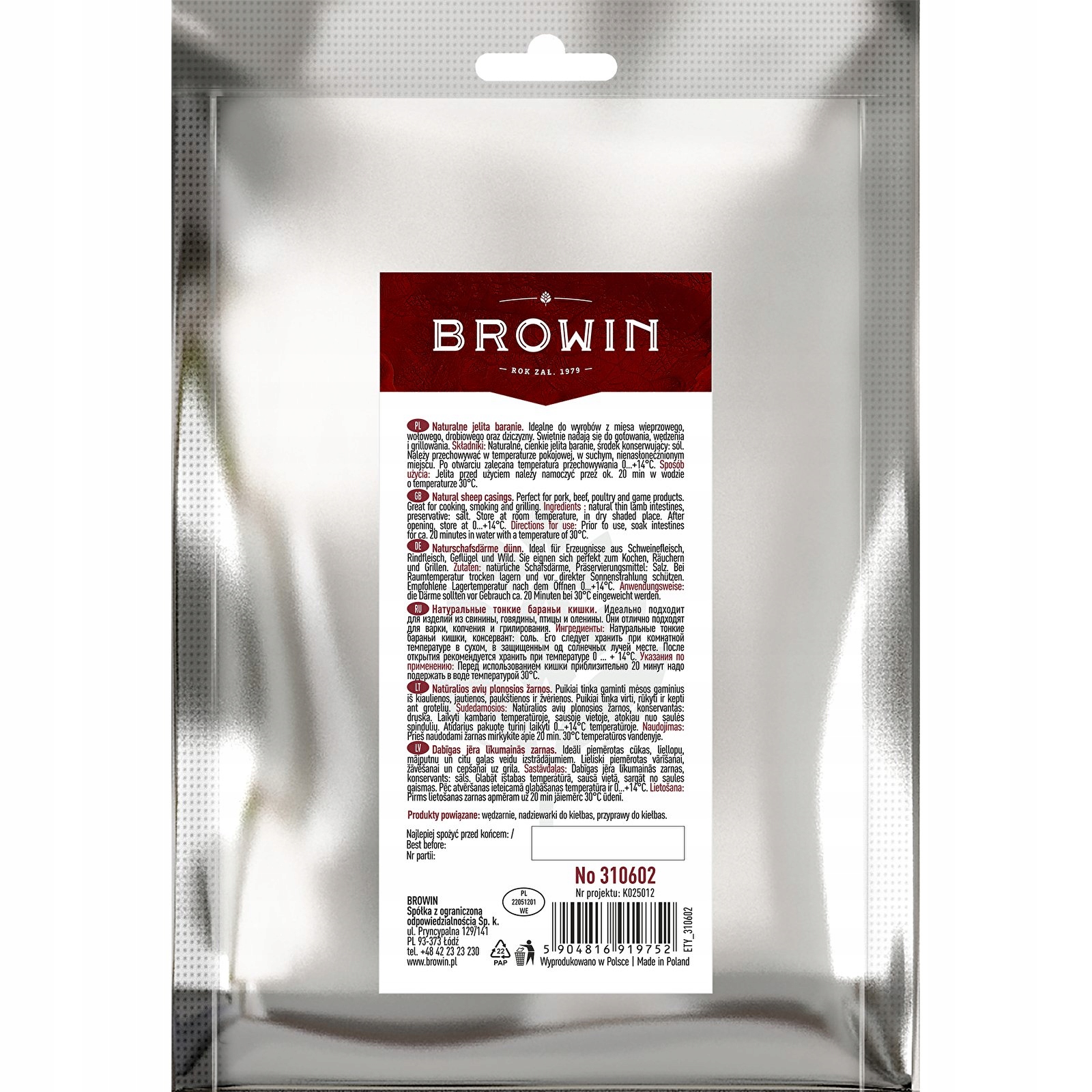 Натуральные овечьи кишки для приготовления различных тонких колбас, таких как кабаносы или сосиски. Кишки герметично упаковывали в присутствии соли в качестве консерванта.