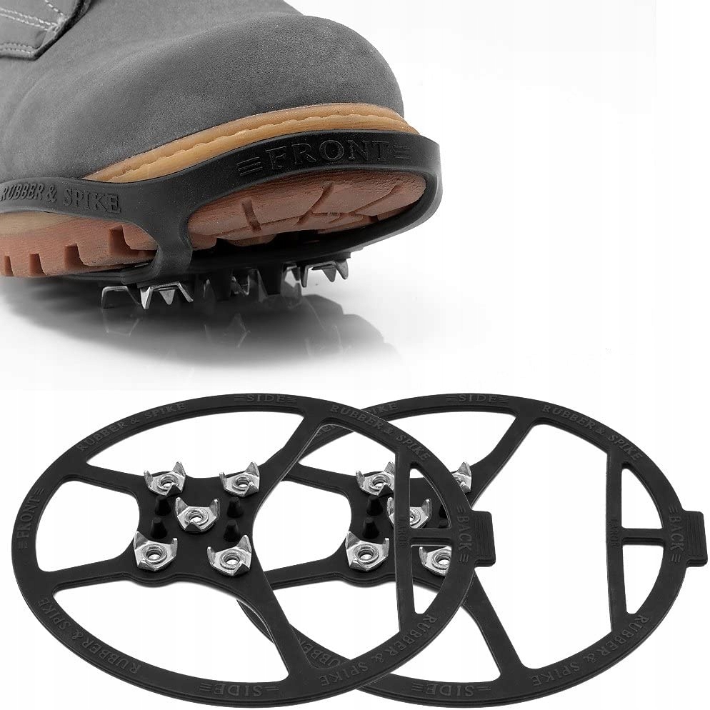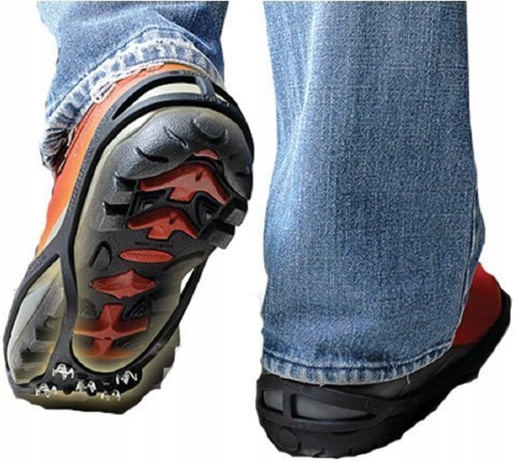 Просто наденьте накладки на обувь, и все готово. Изготовленные из прочной, эластичной резины, они идеально повторяют форму обуви. Они также оснащены металлическими шипами для сцепления.