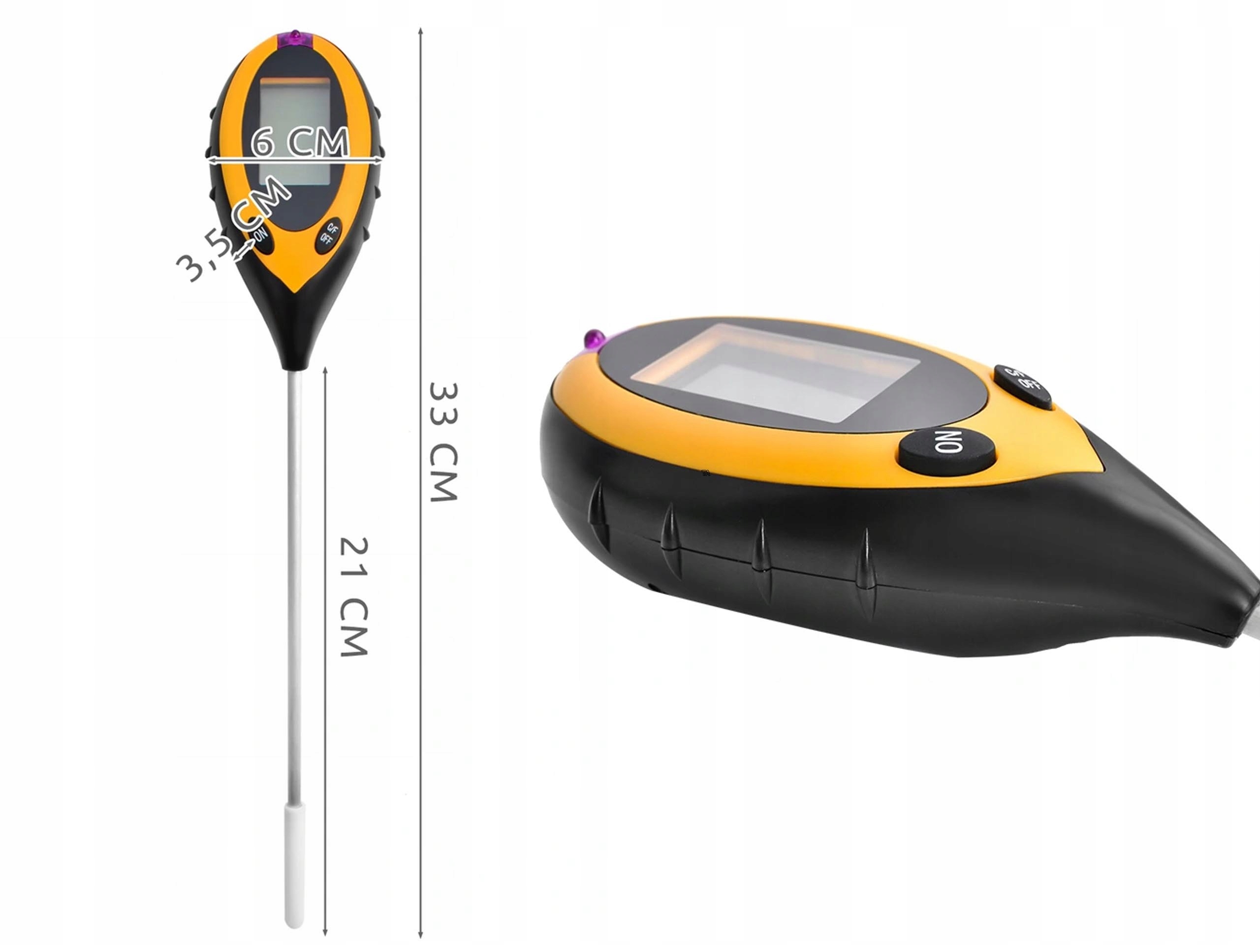Измеритель кислоты имеет дисплей с подсветкой с четкими измерениями - по сравнению с традиционными устройствами, где результат считывается по шкале. Изделие позволяет считывать температуру в градусах Цельсия и Фаренгейта — для выбора заданной шкалы просто используйте переключатель справа. Компактный дизайн позволяет переносить устройство – его можно использовать как в помещении, так и на улице. Через 90 секундподсветка автоматически выключается, это существенно влияет на срок службы батареи. Мы также можем отключить его вручную, удерживая правую кнопку ВЫКЛ.