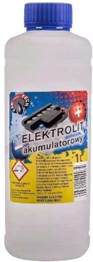 Новый продукт, польское производство. Аккумуляторный электролит (серная кислота) – продукт, позволяющий восполнить уровень электролита в аккумуляторах. При его использовании помните, что кислота при попадании на кожу вызывает серьезные ожоги, поэтому у нее есть безопасный колпачок, но все же следует хранить ее в недоступном для детей месте и быть очень осторожным при ее использовании. Продукт только для профессионального использования. Коррозионное вещество. Соответствует всем стандартам и имеет сертификаты.