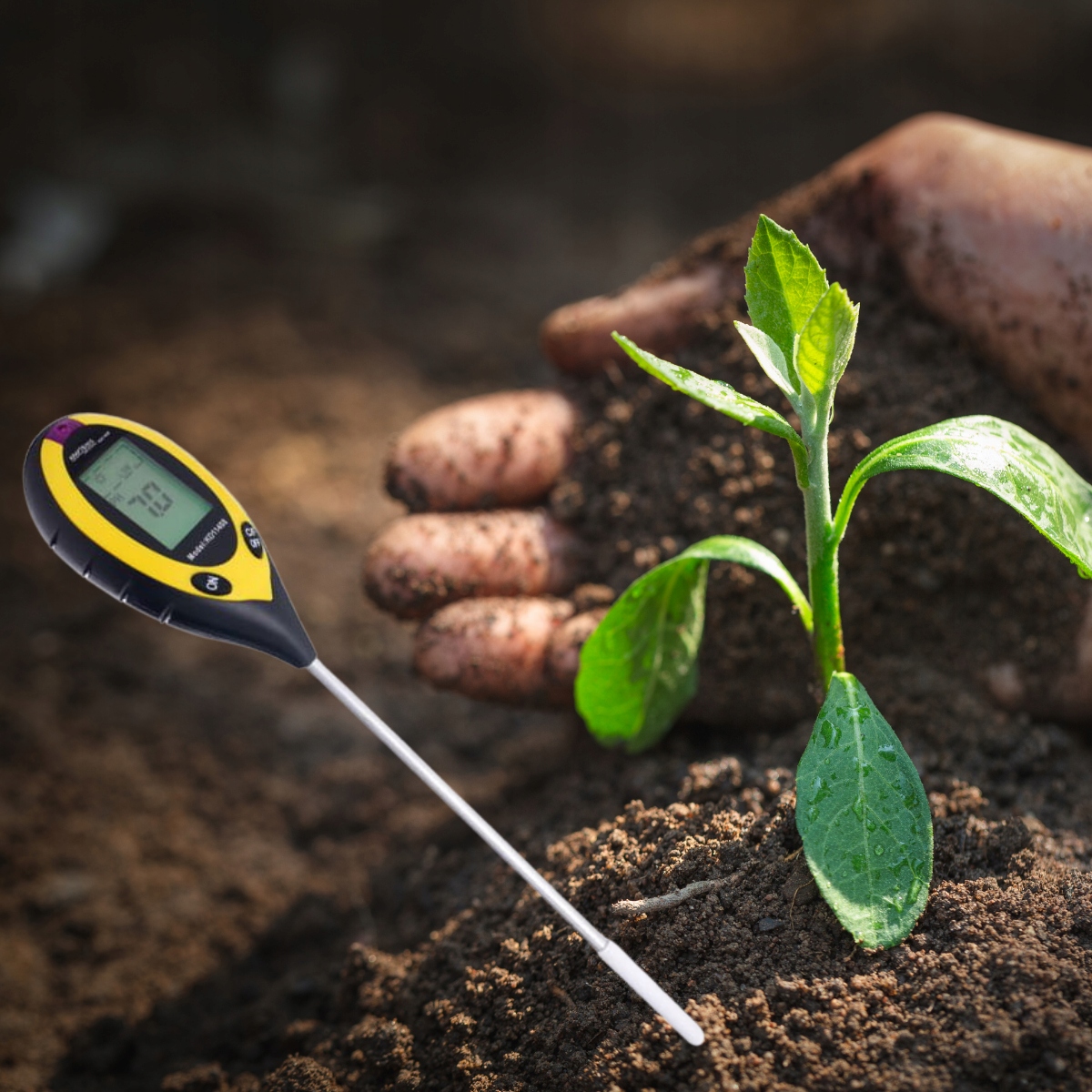 Садовая кислота 4IN1 позволяет измерять pH, влажность, температуру и солнечный свет почвы.