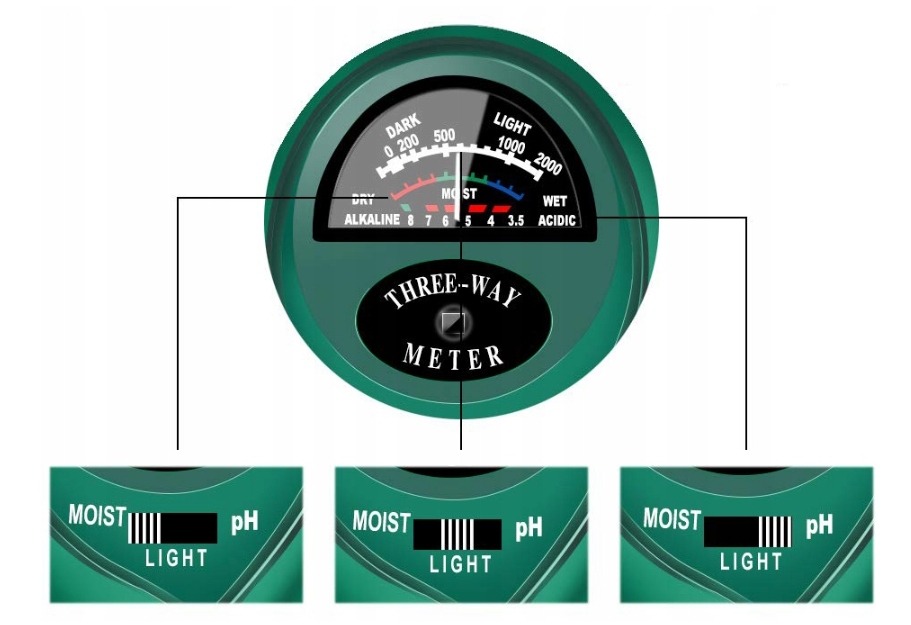 - Кислотомер позволяет точно проверять состояние почвы, четко определяя ее состояние. Это полезно, когда мы хотим плодотворно выращивать растения и овощи. Прибор не требует питания от аккумулятора, обеспечивает бесконечное количество измерений без дополнительных затрат. Поливать растения следует только тогда, когда показания счетчика ниже рекомендуемых.