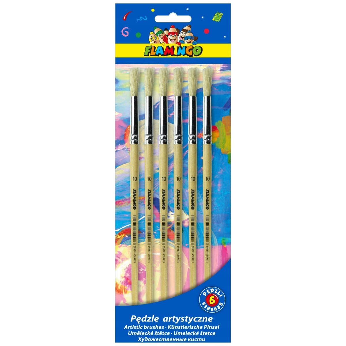 Кисти с натуральной щетиной. Прочные деревянные ручки натурального цвета с маркировкой толщины кисти. Они идеально подходят для занятий рисованием в школе и дома. Тип наконечника: круглый. НЕТ. 10. Упаковано в блистер по 6 штук.