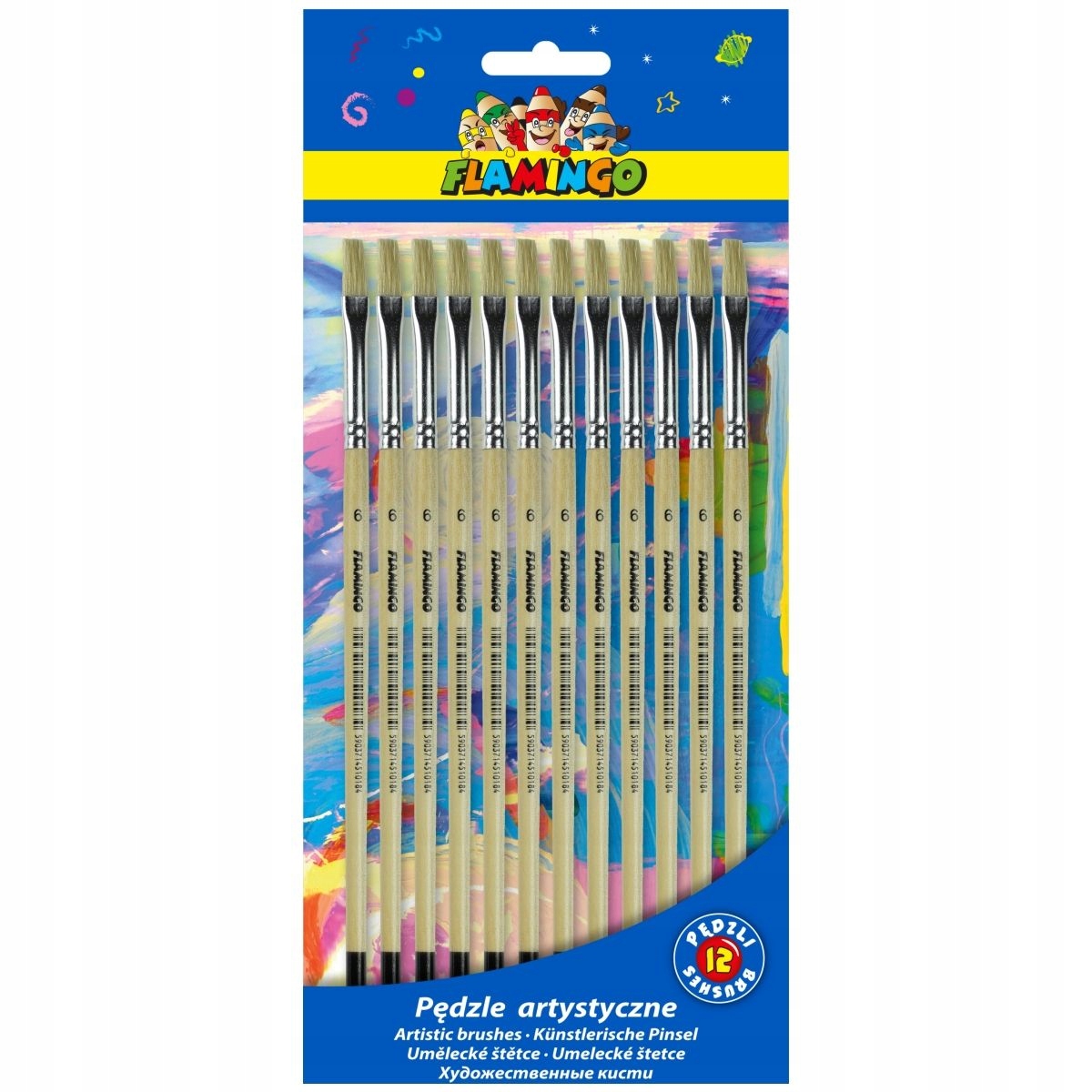 Кисти с натуральной щетиной. Прочные деревянные ручки натурального цвета с маркировкой толщины кисти. Они идеально подходят для занятий рисованием в школе и дома. Тип наконечника: плоский. НЕТ. 6. Упаковано в блистер по 12 штук.