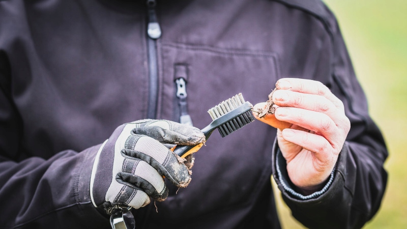 После выкапывания находок можно почистить серебряные, золотые и медные изделия пластиковой щеткой. Стальную часть щетки можно использовать для чистки железных предметов. Щетка в верхней части имеет стальной наконечник для очистки, например, узких канавок.