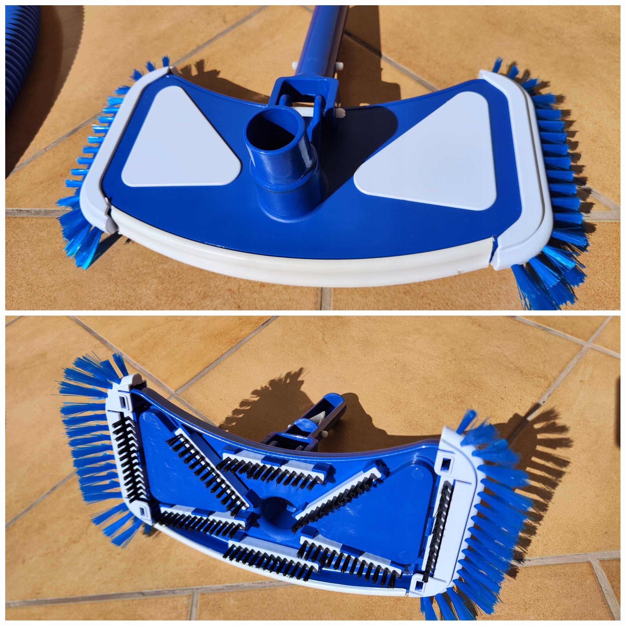 В общей сложности 10 кистей были прикреплены к очистителю вакуумного бассейна. Чтобы очистить проход между стеной и нижней частью бассейна, 2 кисти, выступающих с боковых сторон бассейна. Под вакуумным чистящим средством есть еще 8 кистей. Они очищают дно бассейна. Все кисти устанавливаются таким образом, что турбулентная грязь направлена на всасывающее отверстие