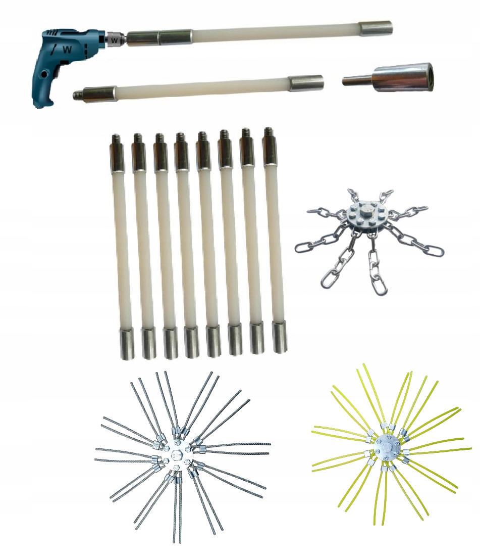 Набор механической очистки дымоходов из ниже 8 м + 3 голов.