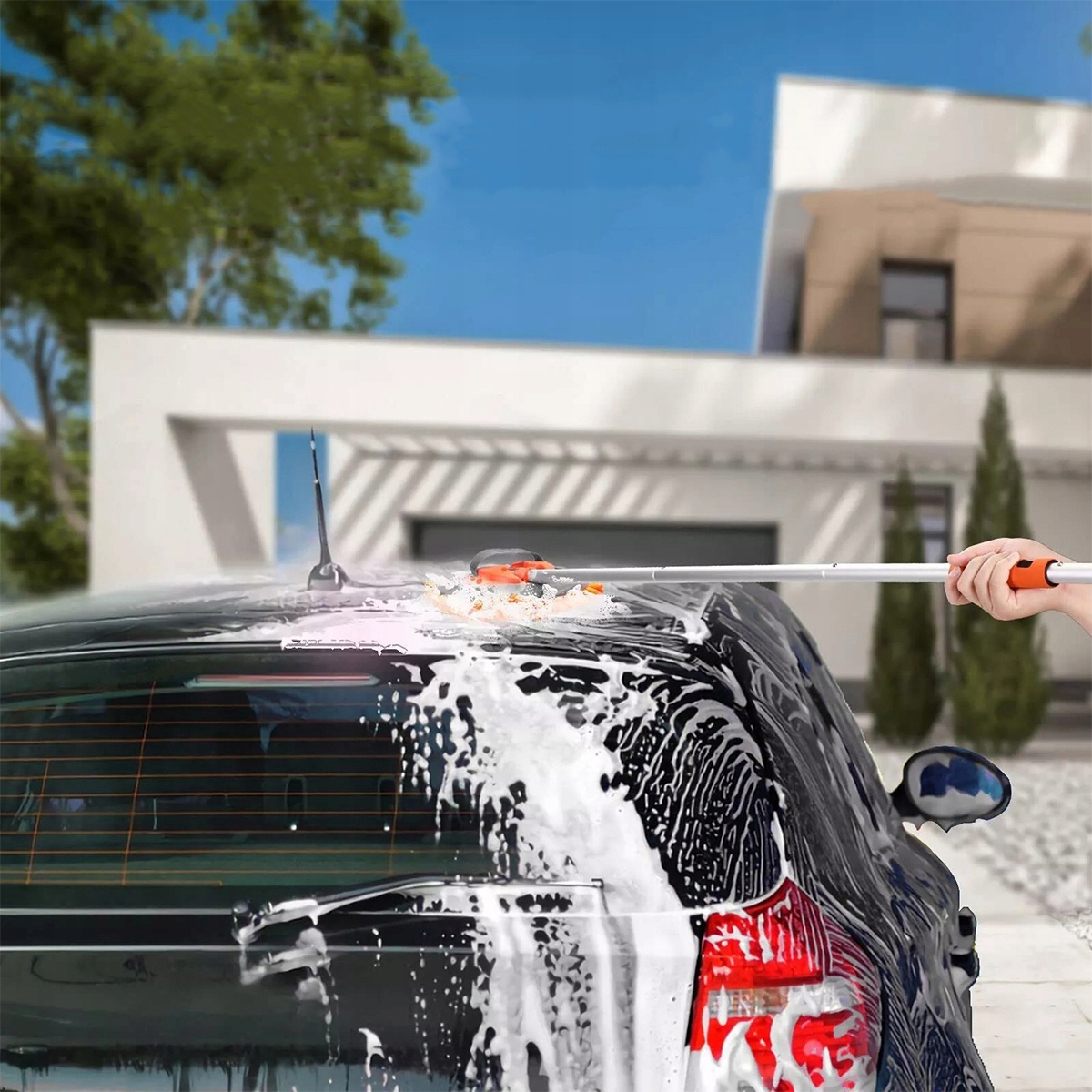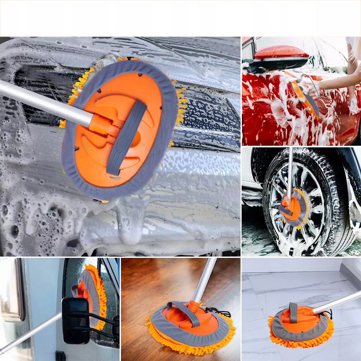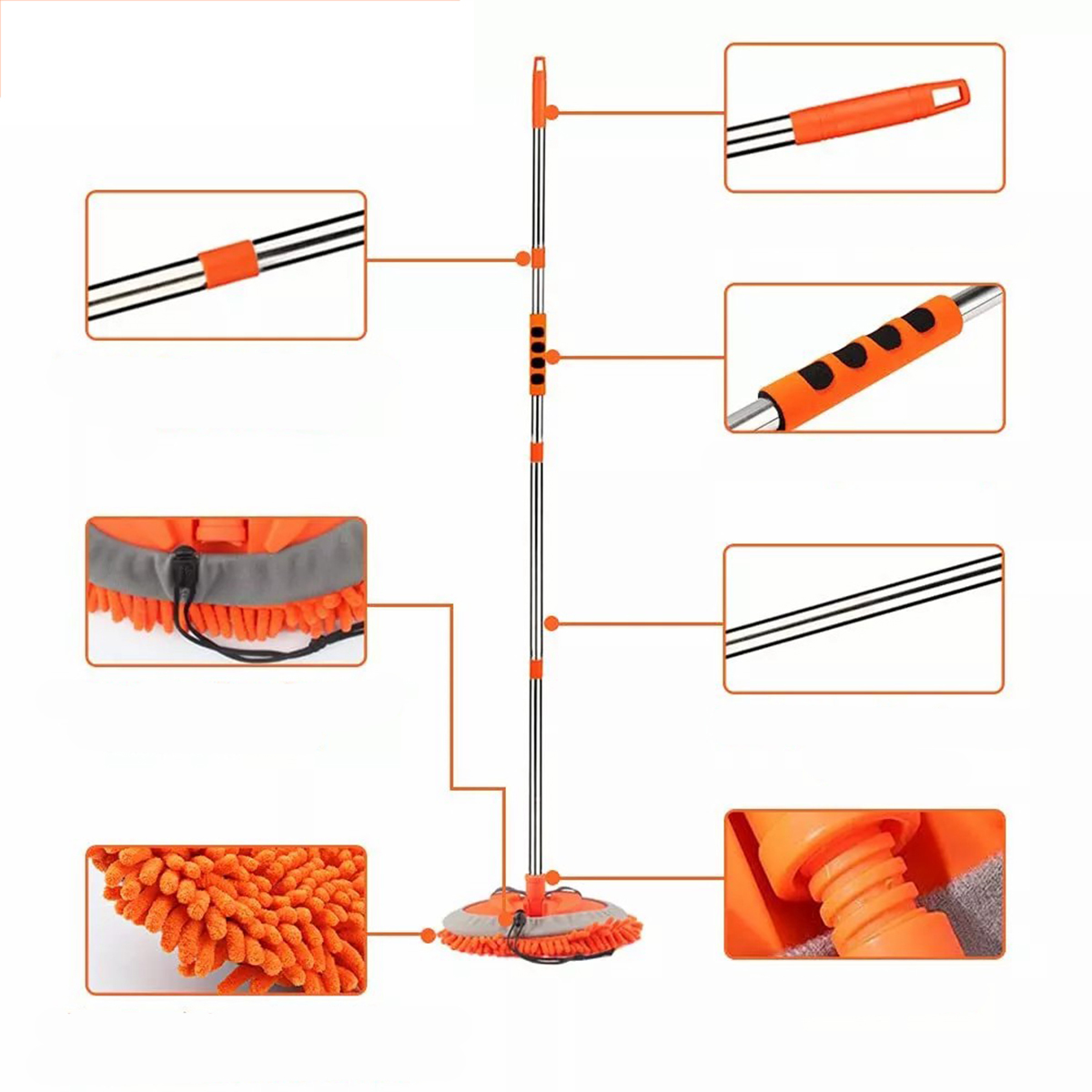 ✅super длинная ручка + Комплексная очистка: супер длинная щетка для мытья автомобиля с длиной 157 см может легко достичь крыши автомобиля и других более высоких мест, поэтому вам не нужно так много двигаться. Телескопическая конструкция и регулируемая в диапазоне 180 градусов головки швабры обеспечивают большую гибкость при промывании автомобиля и обеспечении легкой очистки. Эта превосходная швабка для очистки автомобилей позволяет эффективно сэкономить время! Он также является идеальным полузащитником для стеклянных окон, внешних сараев, лодок, мебели и уборки дома. Чистка автомобиля очень мягкая, не поцарапает автомобиль и не повреждает лак. Без царапин нет пуха. Держатель для мытья машины состоит из 4 частей, что делает его идеальным для хранения в автомобиле