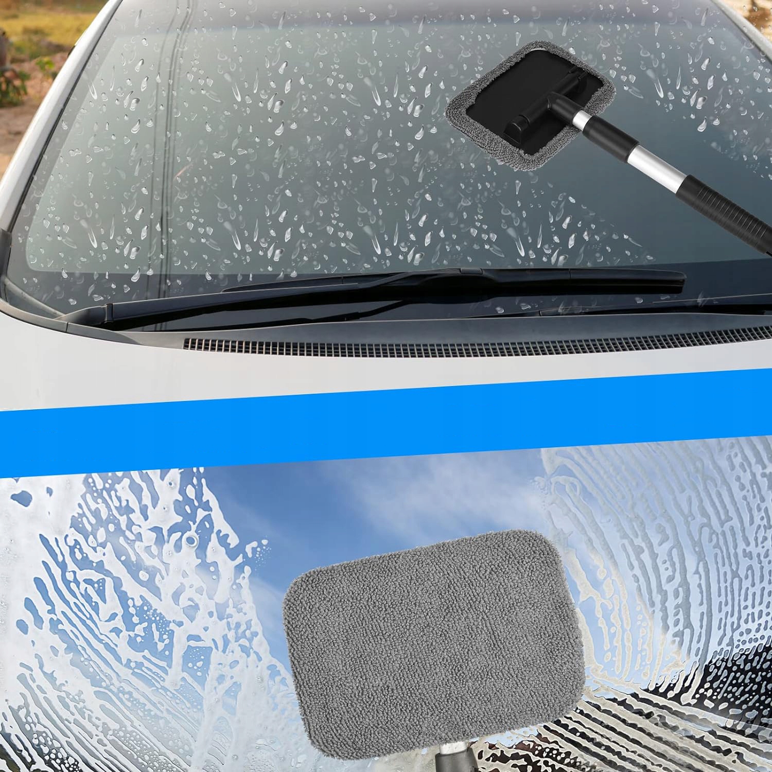 Щетка для мытья автомобиля с телескопической ручкой, микрофибсовой щеткой