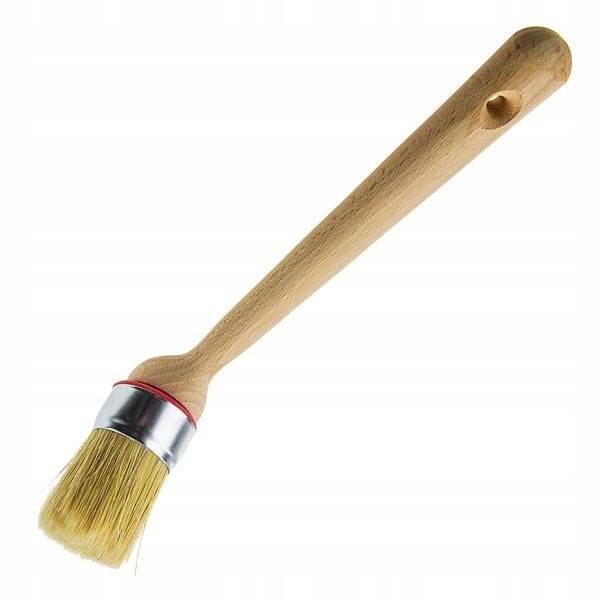 Деревянная ручка тщательно отшлифована и обеспечивает надежный захват кисть в руке. Соответствующая длина ручки облегчает нанесение пасты при обслуживании колес легкового автомобиля. Головка щетки установлена под оптимальным углом, что позволяет распределять пасту быстро и эффективно. Его можно нанести по всей окружности шины и обода одним эффективным движением. На ручке также имеется отверстие для подвешивания щетки.