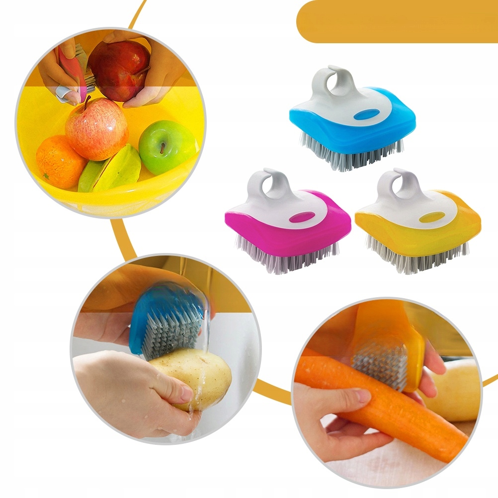 ⭐ ⭐ ⭐ Овощная щетка Сумка щетка изготовлена из пластикового материала премиум -класса. Это так и безопасно. Он может очистить кухню овощей и фруктов. Это инструмент, необходимый на вашей кухне.