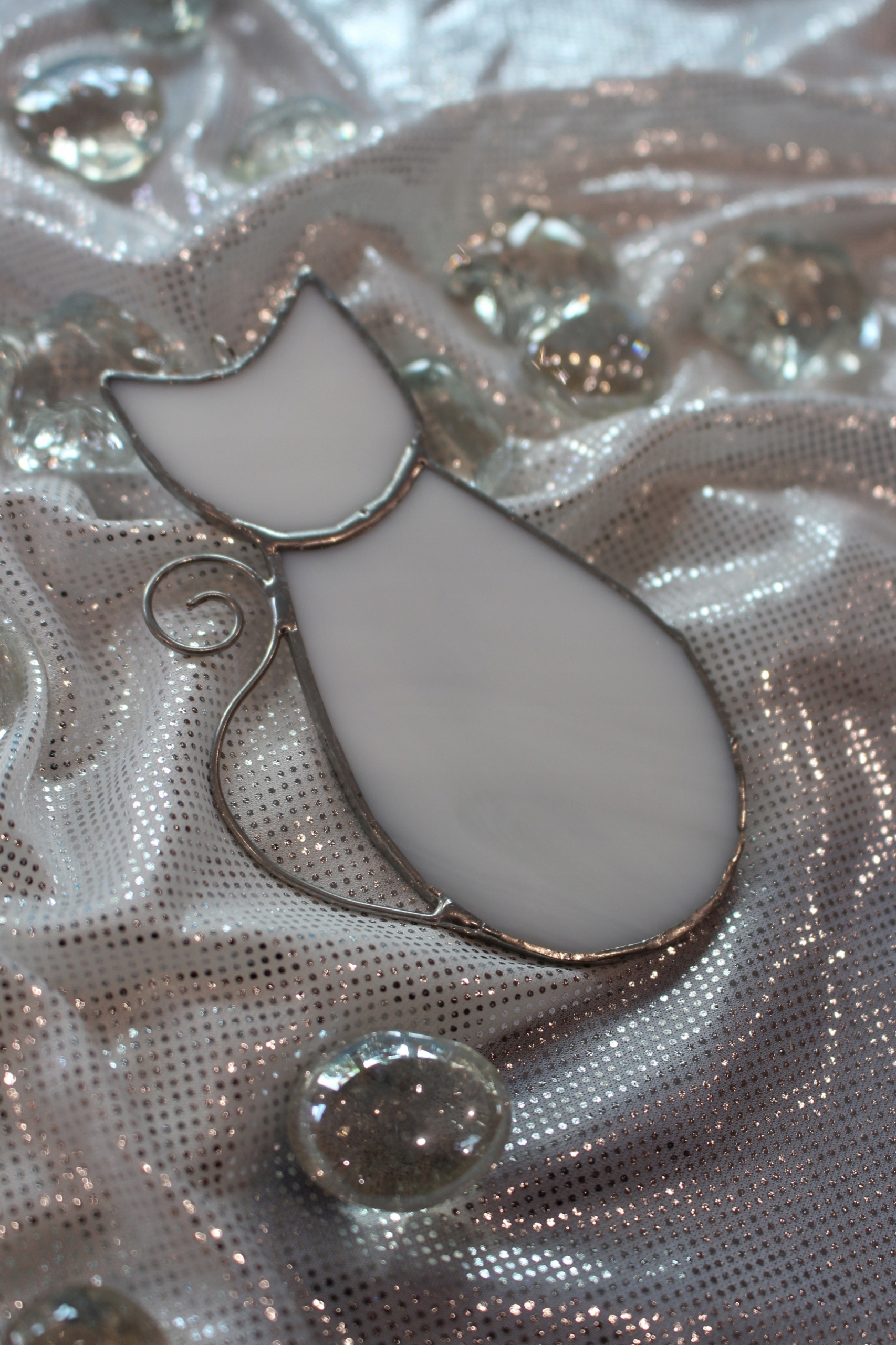 Kot biały witrażowy zawieszka upominek Tiffany