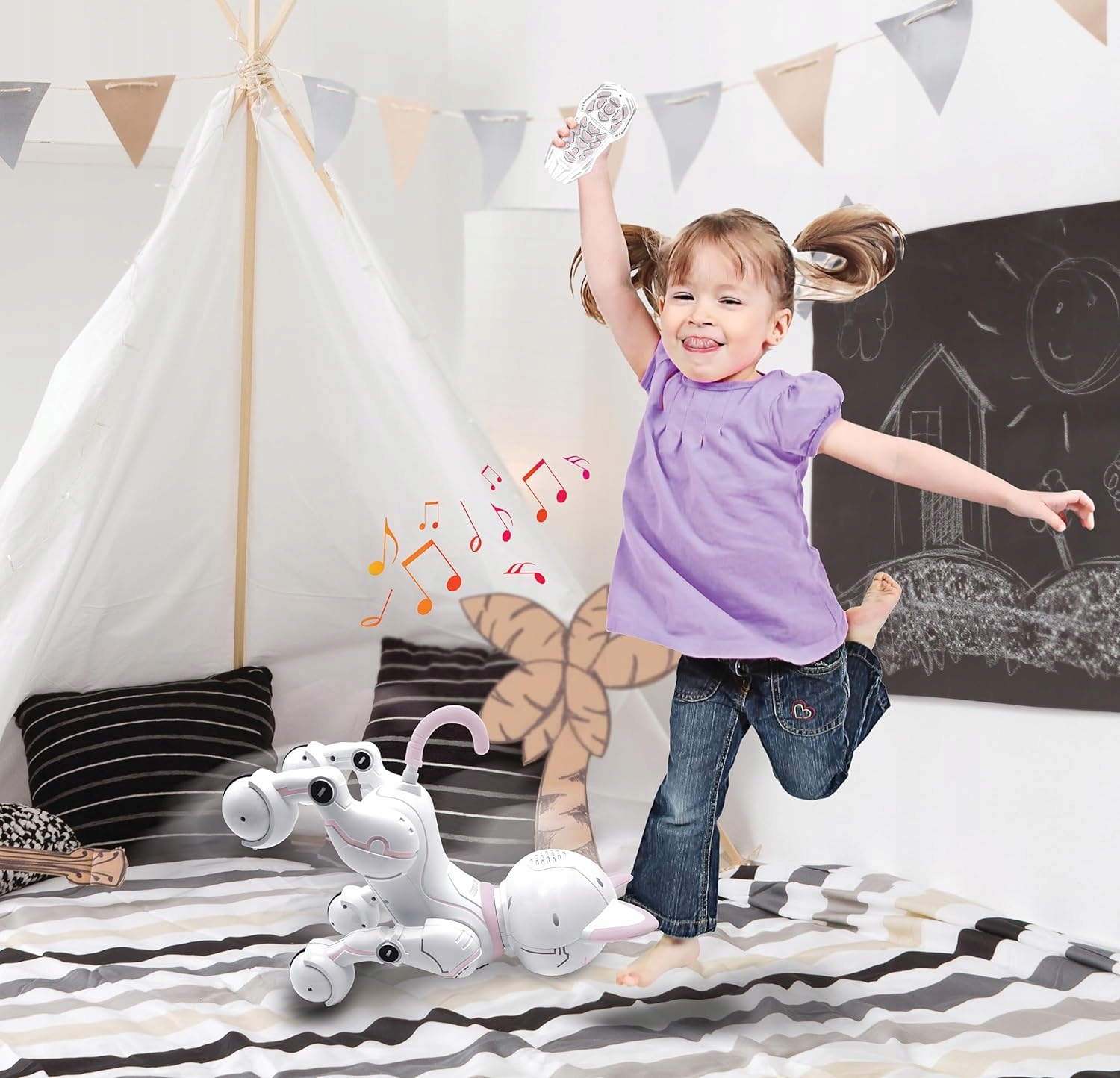 Игрушка побуждает детей учиться логическому мышлению и планированию благодаря функции программирования движений 🤖📚. Вы можете создавать свои собственные танцы и последовательности команд, развивая креативность и координацию 👧💡.