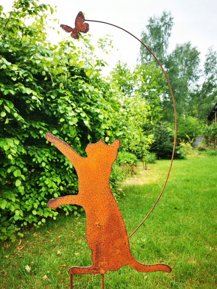 КІТ З МЕТЕЛИКОМ з МЕТАЛУ садовий декор РУСТ