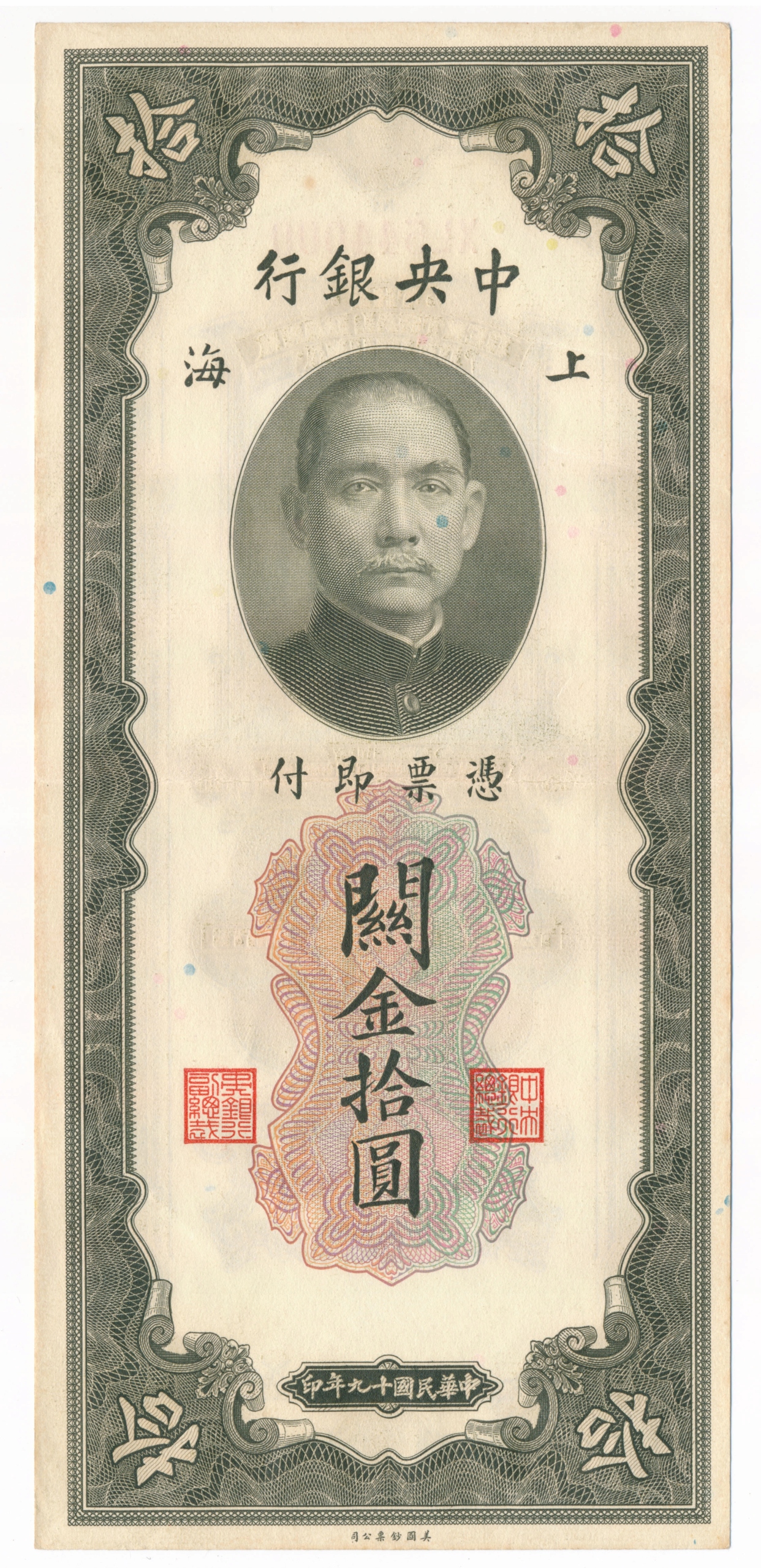 Китай, 10 единиц таможенного золота 1930 года, сорт 3+