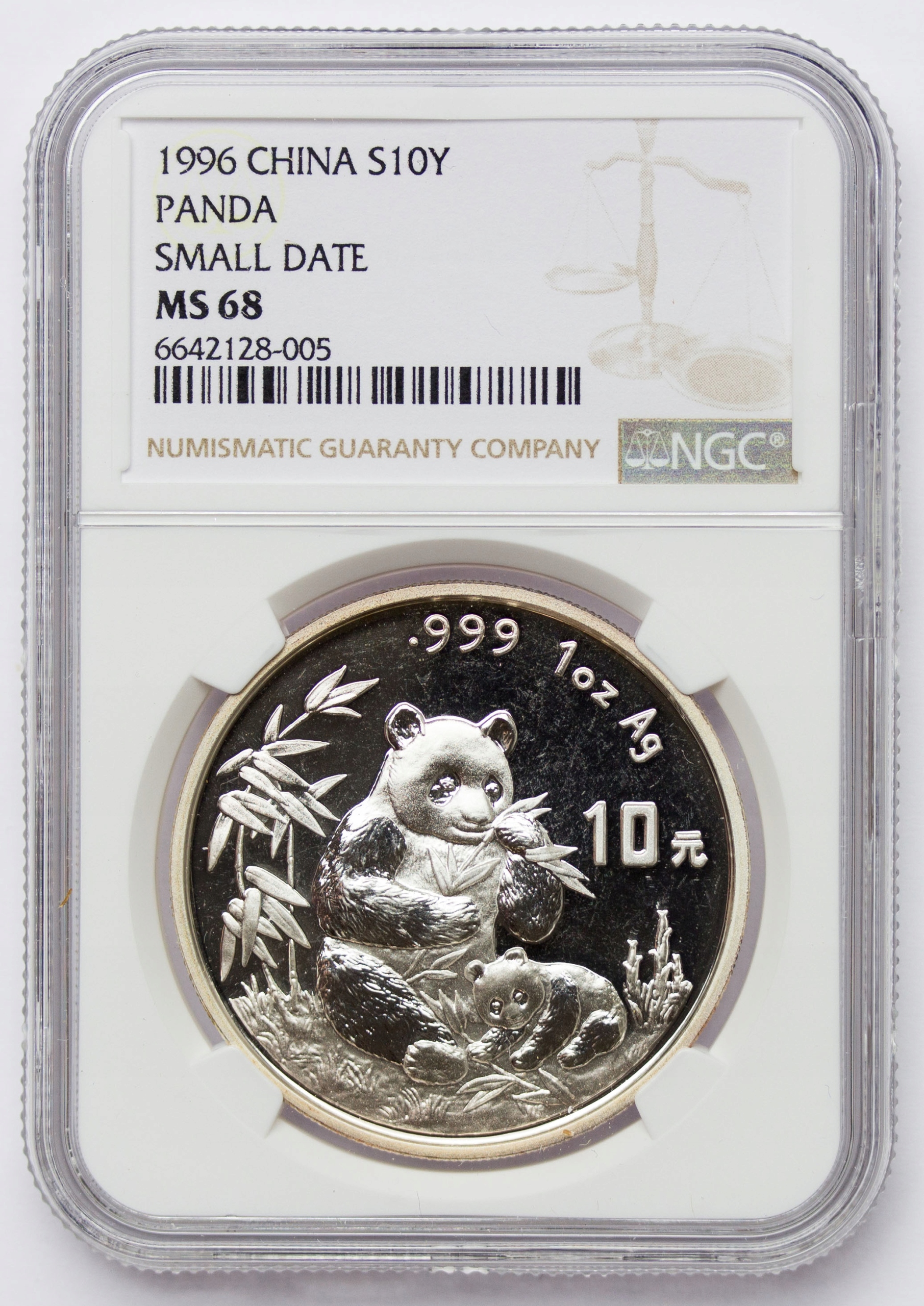 Китай, 10 юанів 1996, Panda, NGC MS68, Small Date, Small Date