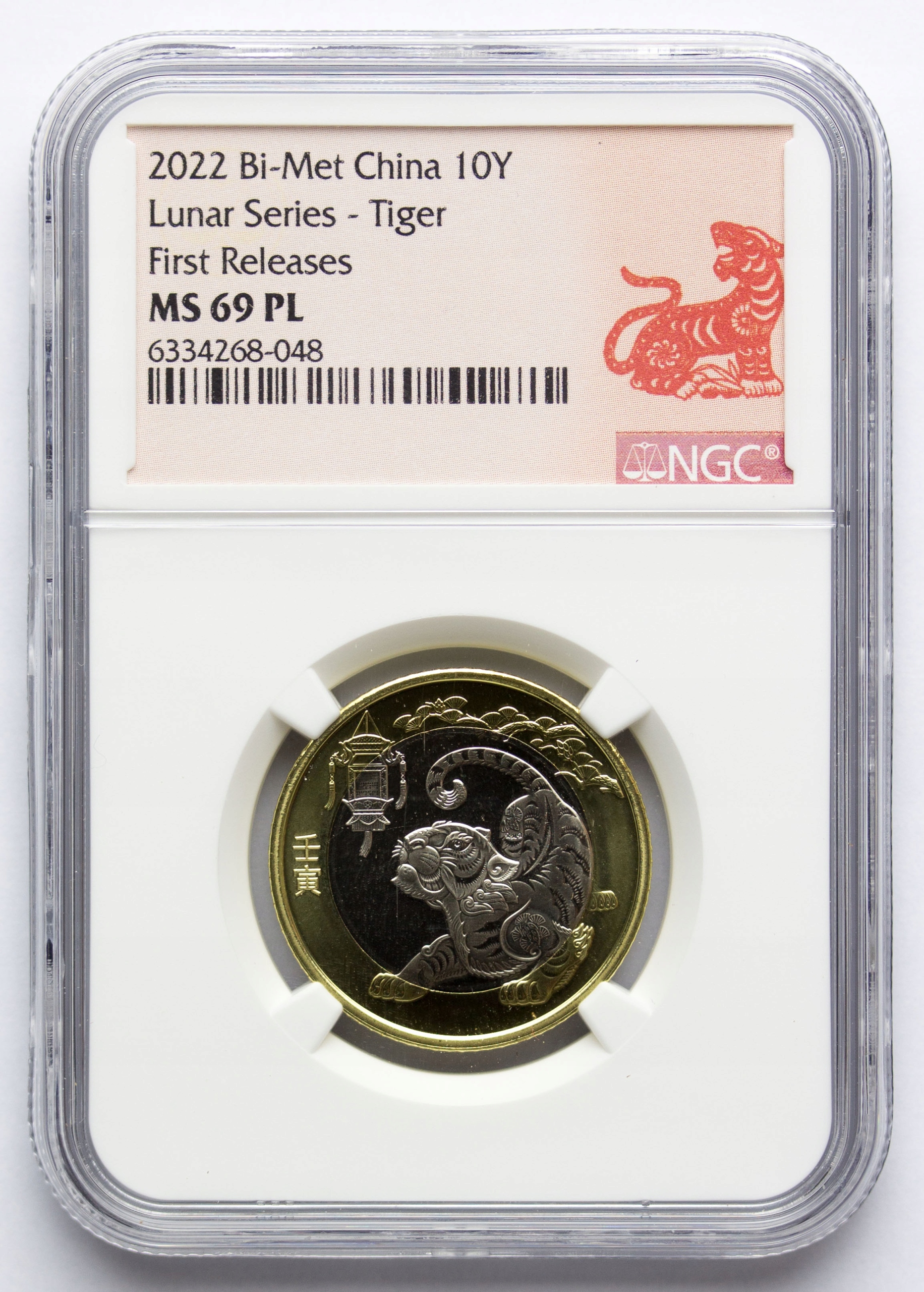 Китай, 10 юаней 2022, тигровый год, первые выпуски, NGC MS69 PL, PREAMLICE