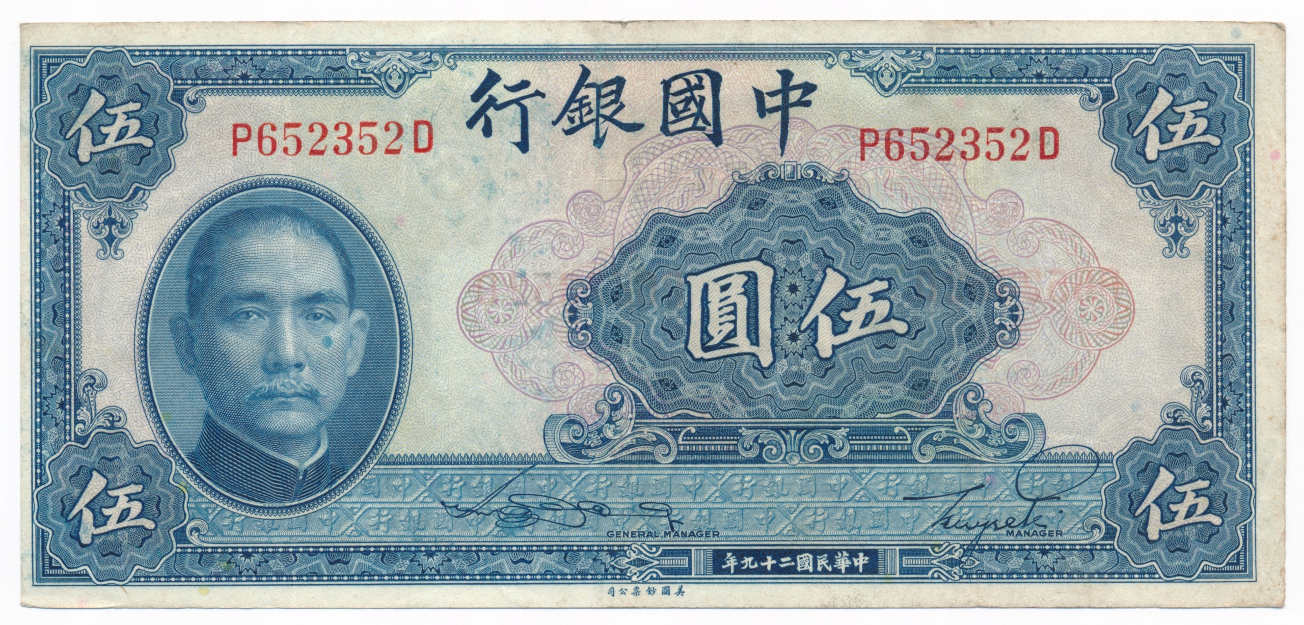 Оплачивая «Китай, 5 юанів 1940 р., клас 3+» данное изделие из «Китай» вы можете быть уверены, что после оформления заказа, доставки в Украину, вы получите именно то, что заказывали, в оговоренные сроки и европейского качества.