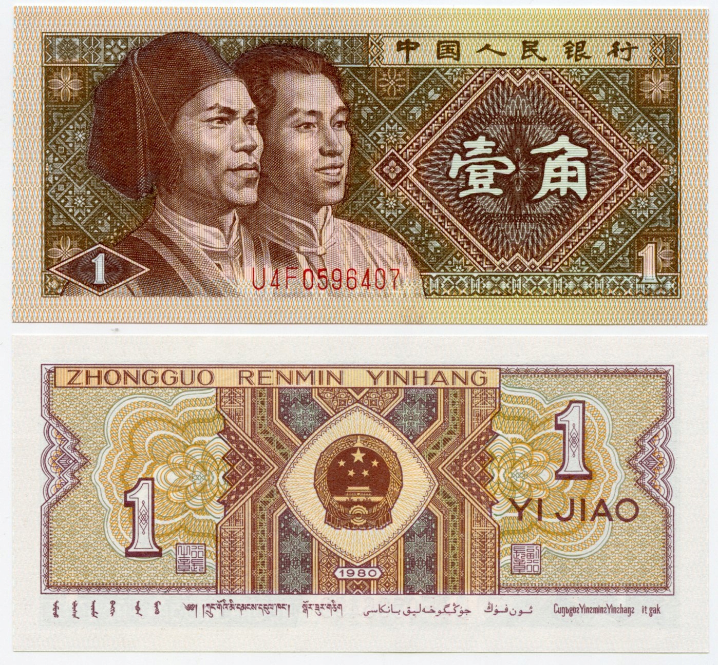 КИТАЙ 1 ЦЗЯО 0.1 ЮАНЬ 1980 П-881б UNC