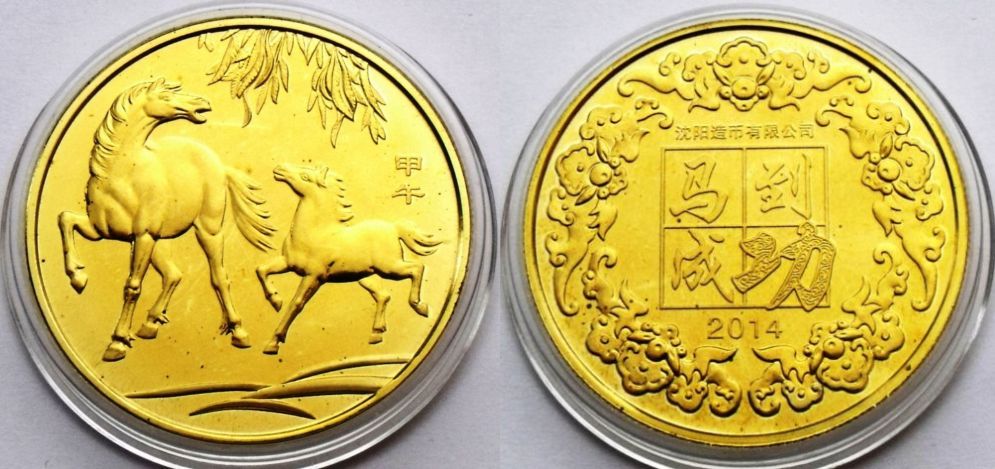 КИТАЙСКИЙ ЗОДИАК 2014 ГОД ЛОШАДИ ЛОШАДИ БОЛЬШИЕ 33 мм UNC