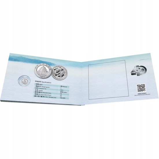 Китайская панда — культовая инвестиционная монета, выпускаемая China Gold Coin Corp с 1982 года. В 2022 году китайская панда отмечает 40-летие ежегодной чеканки монеты. Благодаря своему ежегодно меняющемуся внешнему виду, китайская панда является не только идеальной гарантией для капитала, но и может стать прекрасным дополнением к портфолио коллекционера. Платиновая монета с изображением милой панды отчеканена из чистого слитка Pt.999 весом 1 грамм. Это законное платежное средство, выпускаемое исключительно Народным банком Китая и имеющее государственную гарантию веса и чистоты металла. На аверсе изображен знаменитый Храм Неба (Тянь Тан), расположенный в Пекине. На аверсе также указан год выпуска монеты. Также стоит добавить, что аверс остается неизменным с самого начала чеканки монеты. На реверсе изображены две милые панды, играющие в снегу. На реверсе также можно найти информацию о весе, чистоте металла, номинале, выраженном в юанях, и цифре 40, означающей 40-летие выпуска монет с изображением китайской панды.