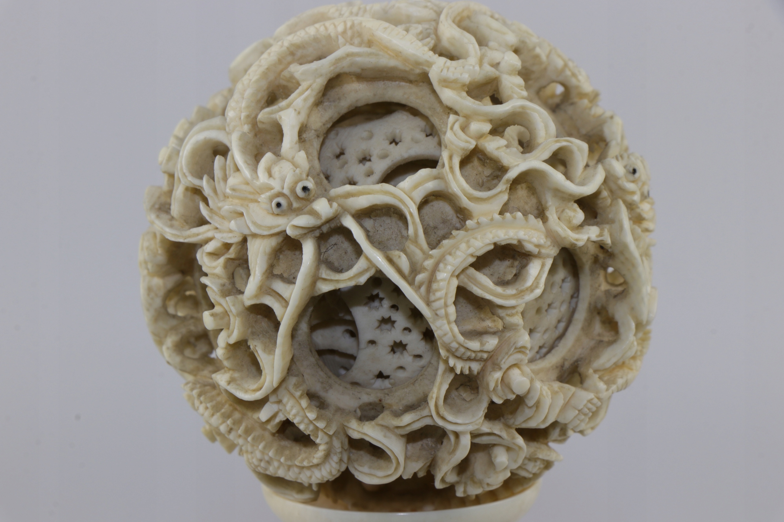 Китайский резной шар по мотивам драконов. Антиквариат XIX века.