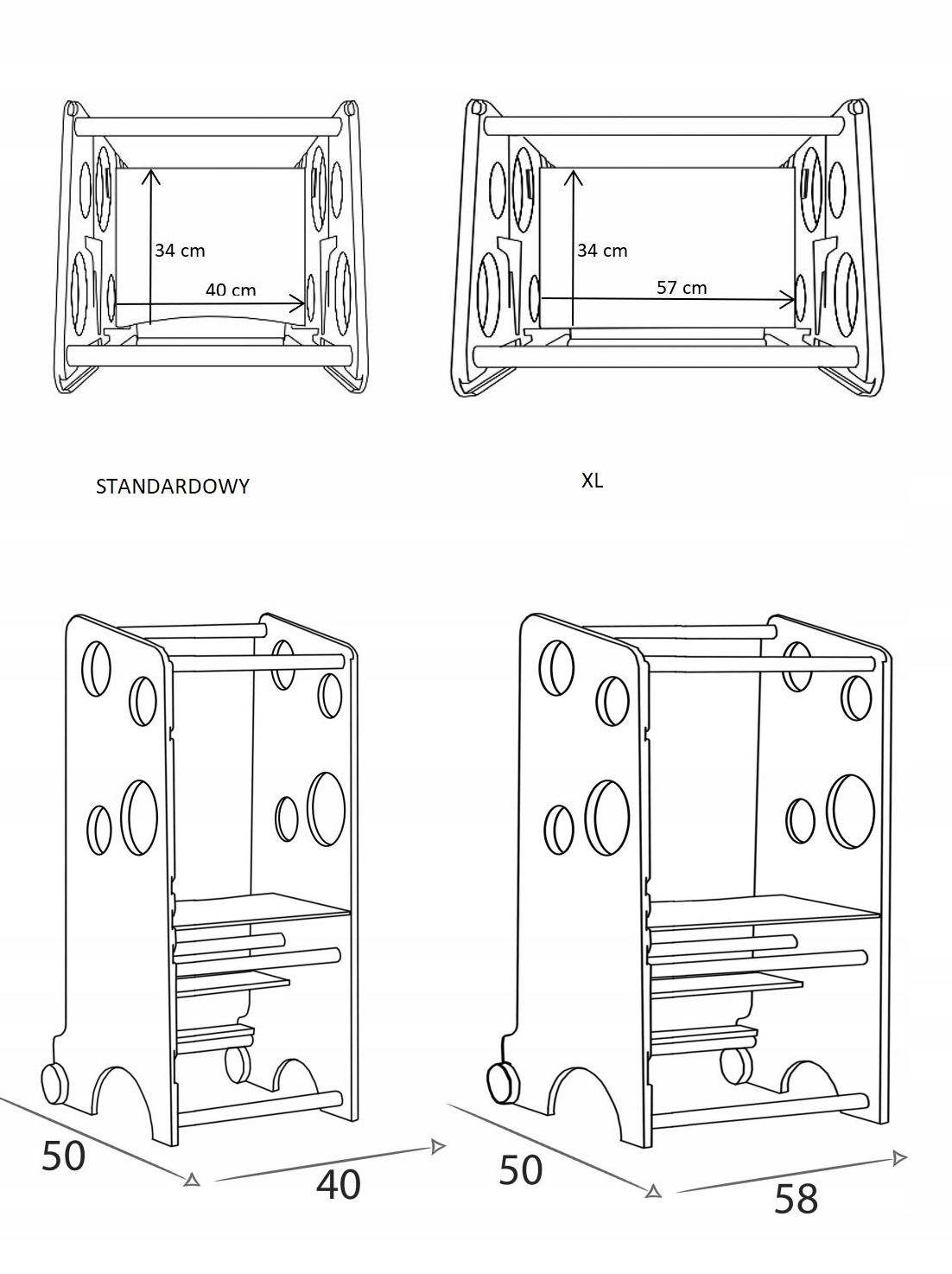 Набор «Кухонный помощник/Обучающая башня», помимо основного использования в качестве кухонного помощника и детского стола со стулом, версия набора имеет дополнительную двустороннюю доску/горку, которую также можно использовать в качестве дополнительной столешницы. Вместе с входящим в комплект колесами и деревянными фигурками его можно использовать для совместной игры в так называемый АЭРОХОККЕЙ.