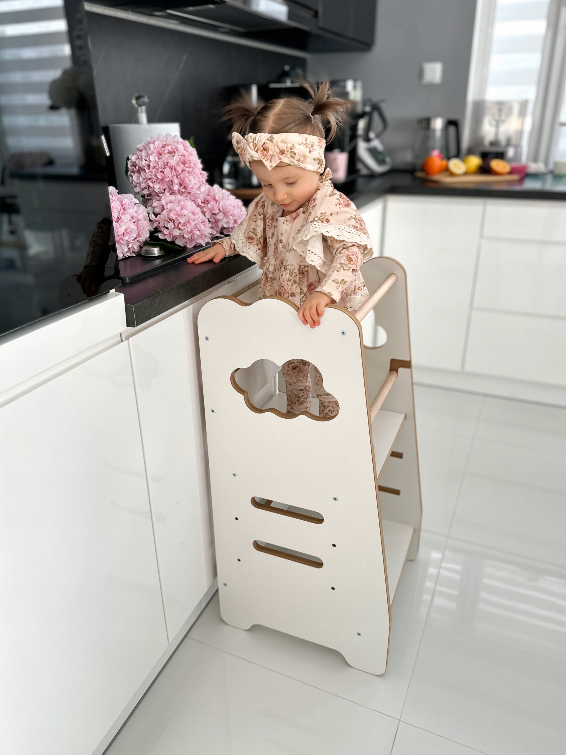 Misioo Kitchen Assistant для детей, кухонный стул, кухонный помощник, 3 уровня, белый, облако, деревянная игра