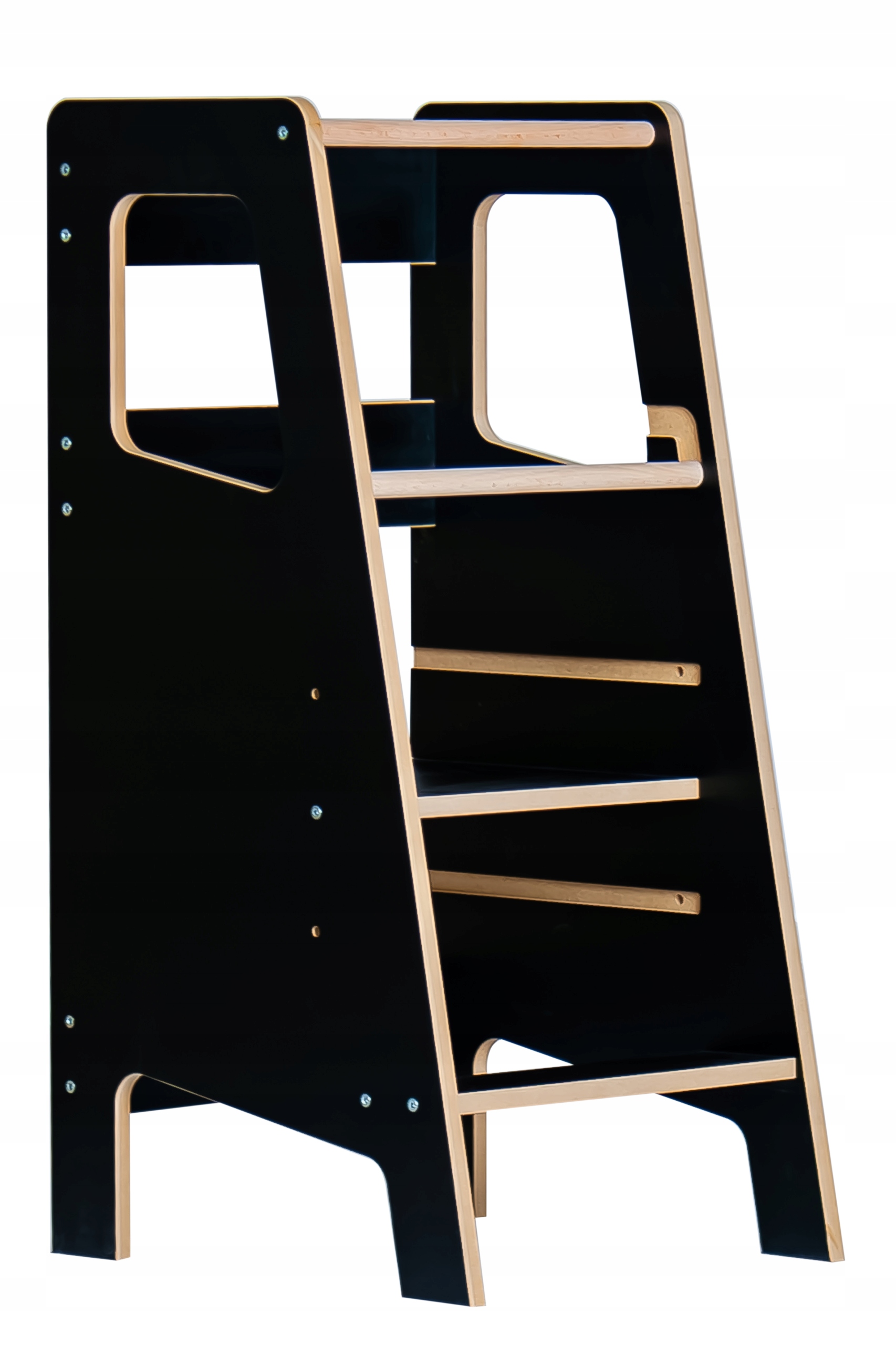 Черный ламинированный МДФ. Изделие отшлифовано вручную с максимальным вниманием к деталям и комфорту ребенка.