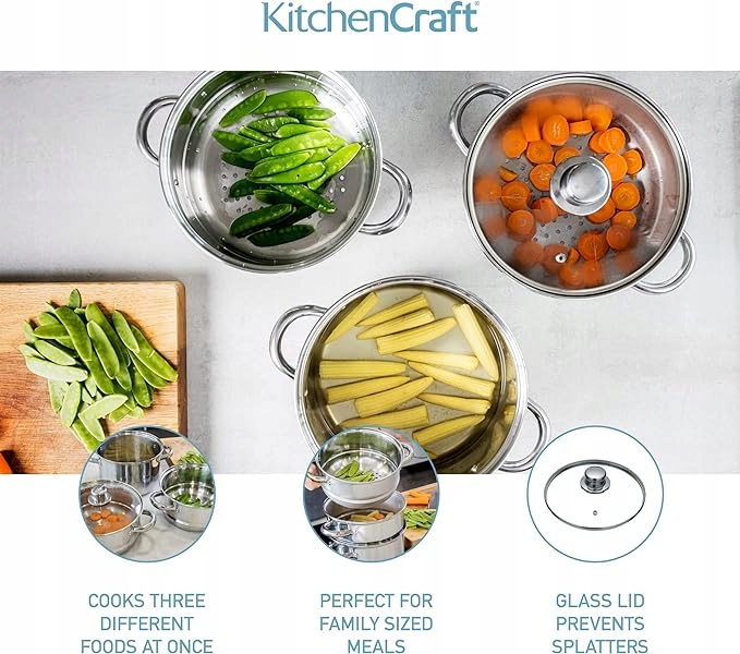 KitchenCraft Set 3 горшки, пароход/кастрюль для супа, 3 предмета 16 см! Описание !!
