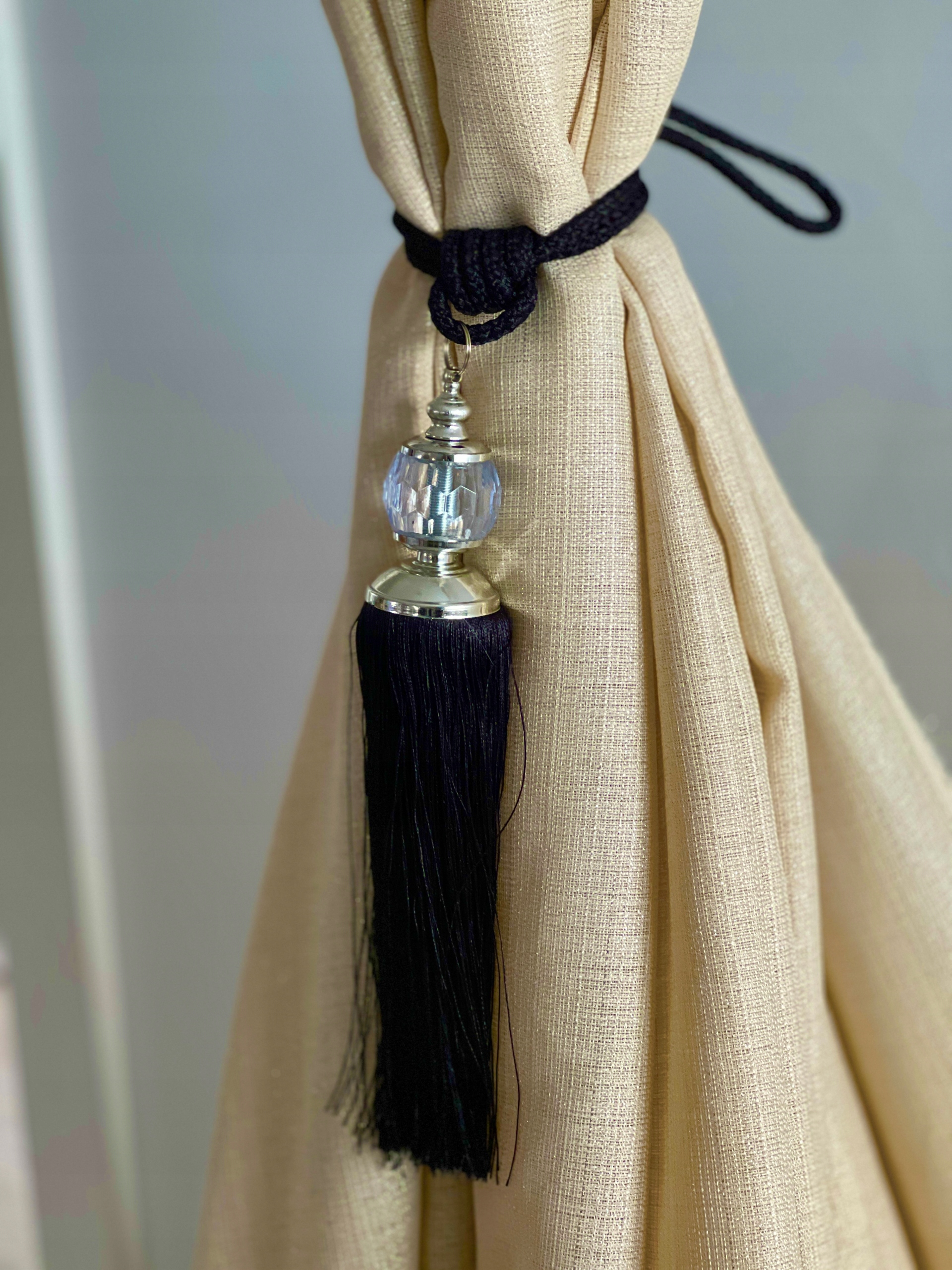 КИСТОЧКА, ЧЕРНАЯ ВЕРЕВКА, ДЕКОРАТИВНЫЙ ПИН-АП ДЛЯ ПОДВЕСКИ ШТОР