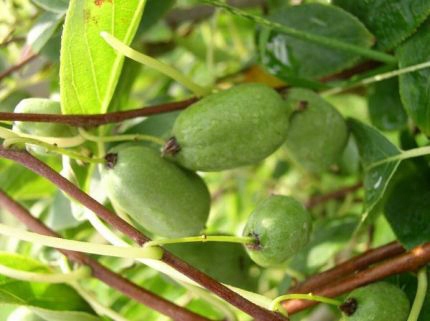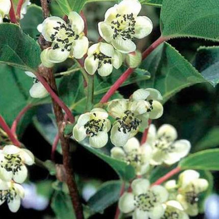 Декоративная лиана с вкусными плодами (Мини-киви), способная сделать любой сад привлекательнее. Он сильно разрастается, достигая до 4 м. Обоеполый, самоопыляемый сорт, цветет в июне. Для плодоношения требуется около 150 дней без заморозков. Плоды созревают в октябре. Когда мы собираем их незрелыми, они размягчаются и созревают, их хранят вместе с фруктами, выделяющими этилен, например яблоками, упаковывают в пакет и хранят при комнатной температуре. Плодоносить начинает через 2-3 года после посадки. Выдерживает морозы до -25°С. Обрезку лучше проводить поздней осенью или зимой (до начала вегетации), либо летом после частичного одревеснения новых приростов.