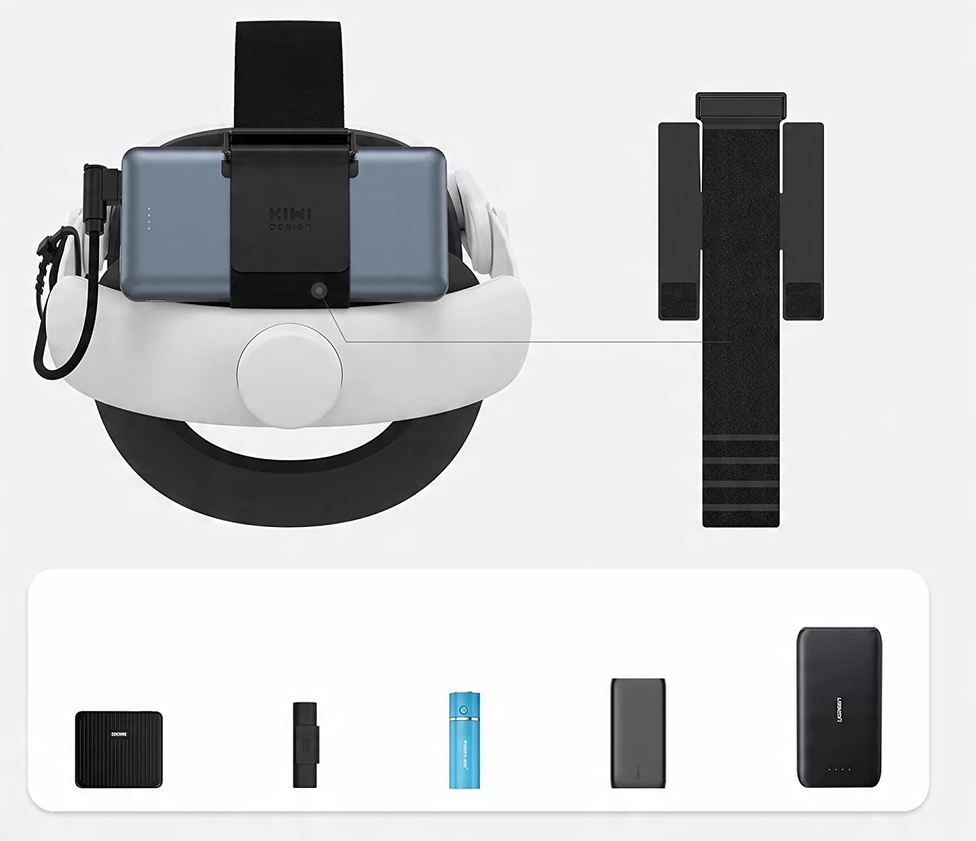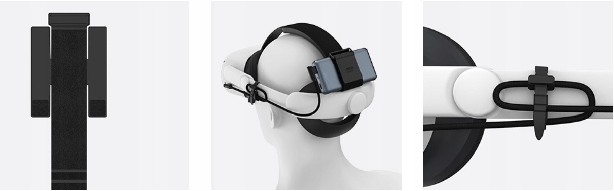Регулируемая застежка-липучка позволяет использовать ремень для крепления VR Power Bank с несколькими внешними источниками питания.