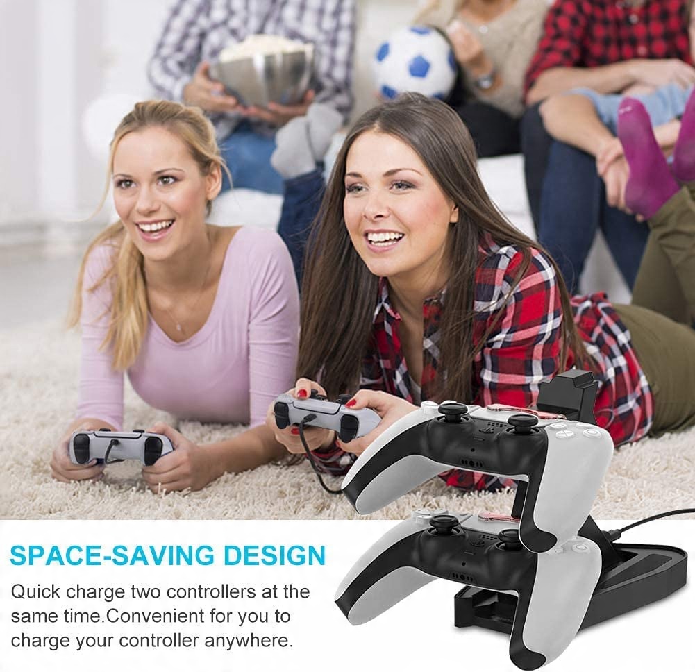 зарядное устройство контроллера PS5, двойная USB -зарядная станция для зарядного устройства PlayStation 5 DualSense Console Coverger для контроллера с док -станцией со светодиодным индикатором, совместимым с контроллером Sony PS5 (черный)