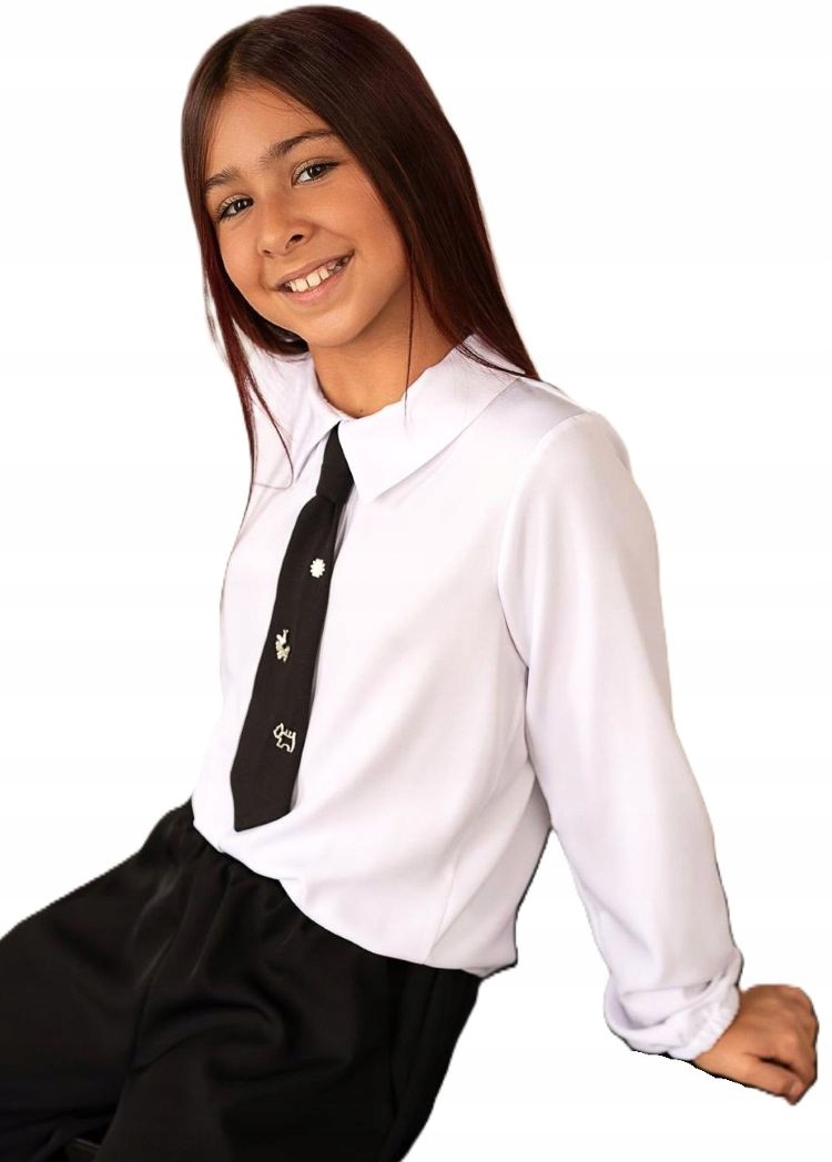 KIZ БЕЛАЯ ТОРЖЕСТВЕННАЯ БЛУЗКА/РУБАШКА С ДЛИННЫМ РУКАВОМ И ГАЛСТКОМ 146