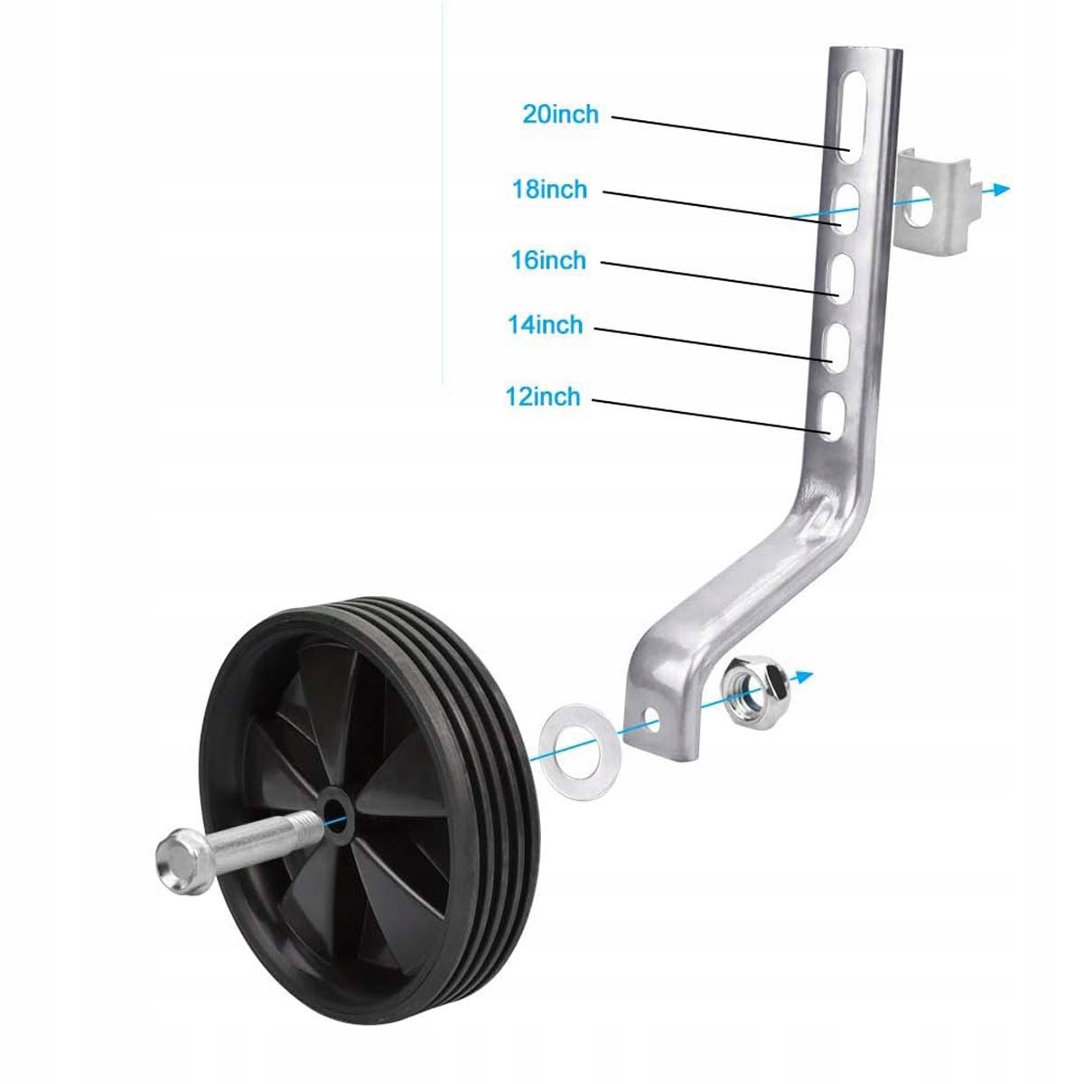 -⬆️На опорном рычаге тренировочного колеса имеется 5 круглых отверстий, вы можете регулировать высоту в соответствии с размером колеса, подходит для 12 - Велосипеды диаметром 20 дюймов