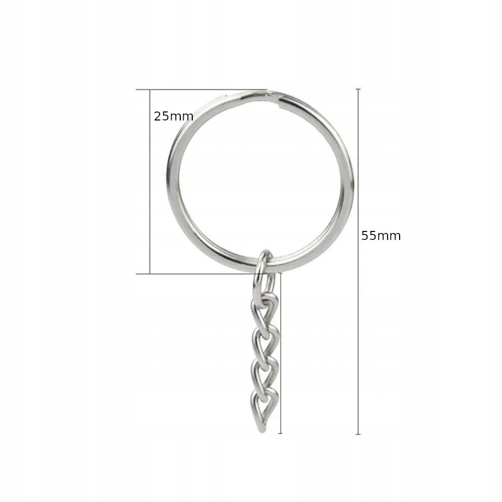 KÓŁKA Z ŁAŃCUSZKIEM DO BRELOKÓW BAZA 25MM + 8MM KÓŁECZKA x100 SZT ZESTAW