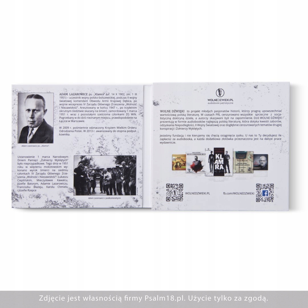В аудиокниге "Кламра -мой отец" Мы представляем движущуюся историю его сына, вспоминая судьбу майора Адама Лазаровича -солдата битвы при большевиков, командующего полком домашней армии, командующего величайшей партизанской битвой в Подкарпаси в 1944444 года, соучредитель -пост -вуз. Независимость », испытываемая трехлетним, жестоким расследованием UB. Приговоренное к четырехкратному смертному приговору было застрелено и похоронен в неизвестном месте.