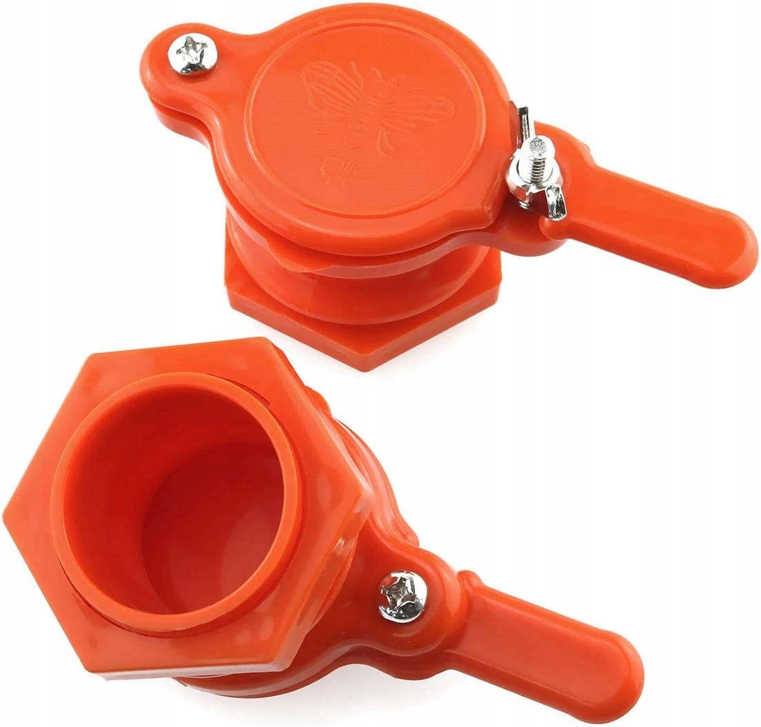 Клапан изготовлен из твердого пластика. Дополнительно клапан оснащен прокладкой и герметичное закрытие, благодаря которому он отличается высокой герметичностью, предотвращает вытекание меда из емкости.