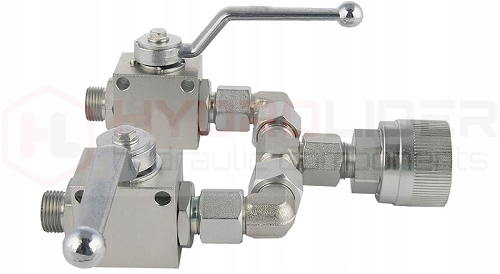 Гидравлический комплект управления исполнительными механизмами закрытия и открытия заслонок бункера в разбрасывателях удобрений AMAZONE и BRZEG и других, оснащенных двумя приводами и двумя раздельно действующими заслонками.