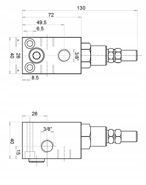 Количество гидравлических отверстий в корпусе: 3 (+ выход для манометра) Внутренняя резьба в корпусе: 3/8" [BSP]