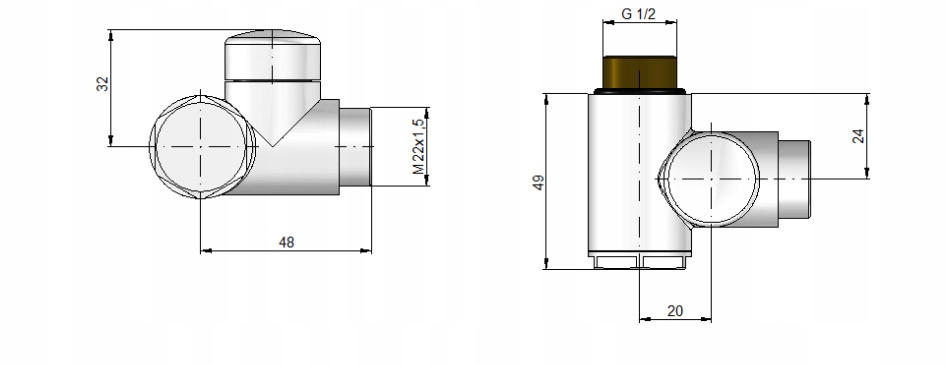 В корпус клапана интегрирован тройник, позволяющий подключить электронагреватель напрямую через клапан к радиатору - рекомендуется устанавливать ТЭН на запорный клапан.