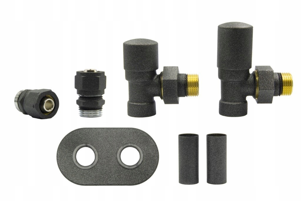 Угловой регулирующий клапан SWING, темный структурный графит All in One Pex, овальная комбинированная розетка