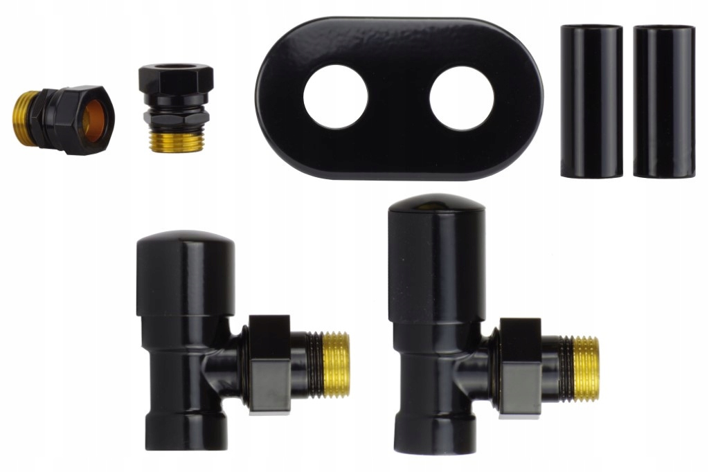 Угловой регулирующий клапан SWING, черный глянцевый All in One Cu, овальная комбинированная розетка