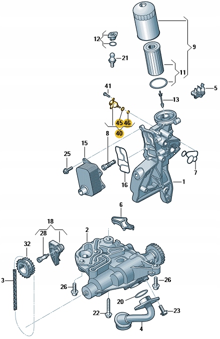- 1x 06k115243ab (клапан давления масла, положение № 40 на диаграмме)