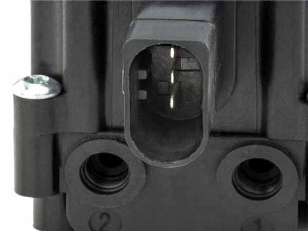Блок клапанов, электромагнитный клапан пневматической подвески, блок электромагнитной пневмоподвескиотвечает за правильное распределение воздуха от компрессора к элементам пневмоподвески (баллонам или пневмоамортизаторам). Коррозия клапана или утечка блока могут привести к необратимому повреждению компрессора. Влага приводит к разрушению компонентов электромагнита внутри блока клапанов, вызывая многочисленные дополнительные проблемы, связанные с некорректной работой всей системы пневмоподвески.