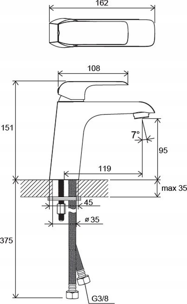 - гибкие соединительные шланги, резьба G3/8