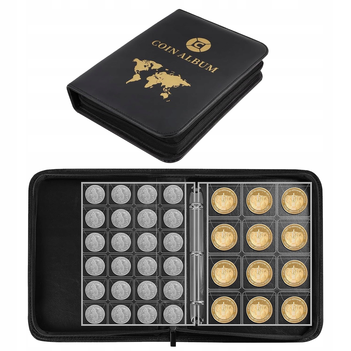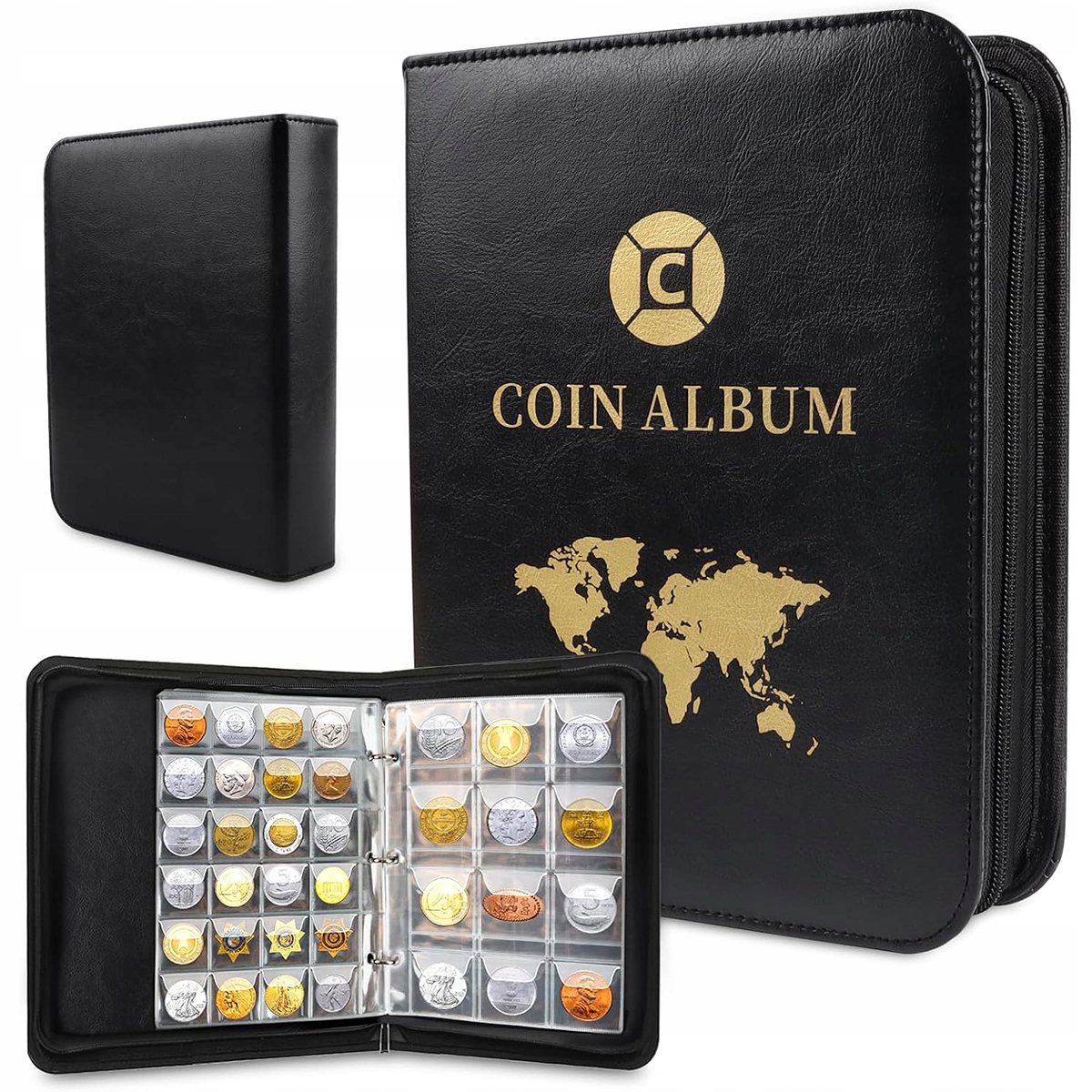 Альбом для монет 480 карманов, 2 альбома для монет евро 3,5x3,5 см/4,5x4,5 см, альбом для хранения монет на молнии, альбом для монет, альбом для монет 25,8x20x5 см, коллекционный альбом для монет прозрачный